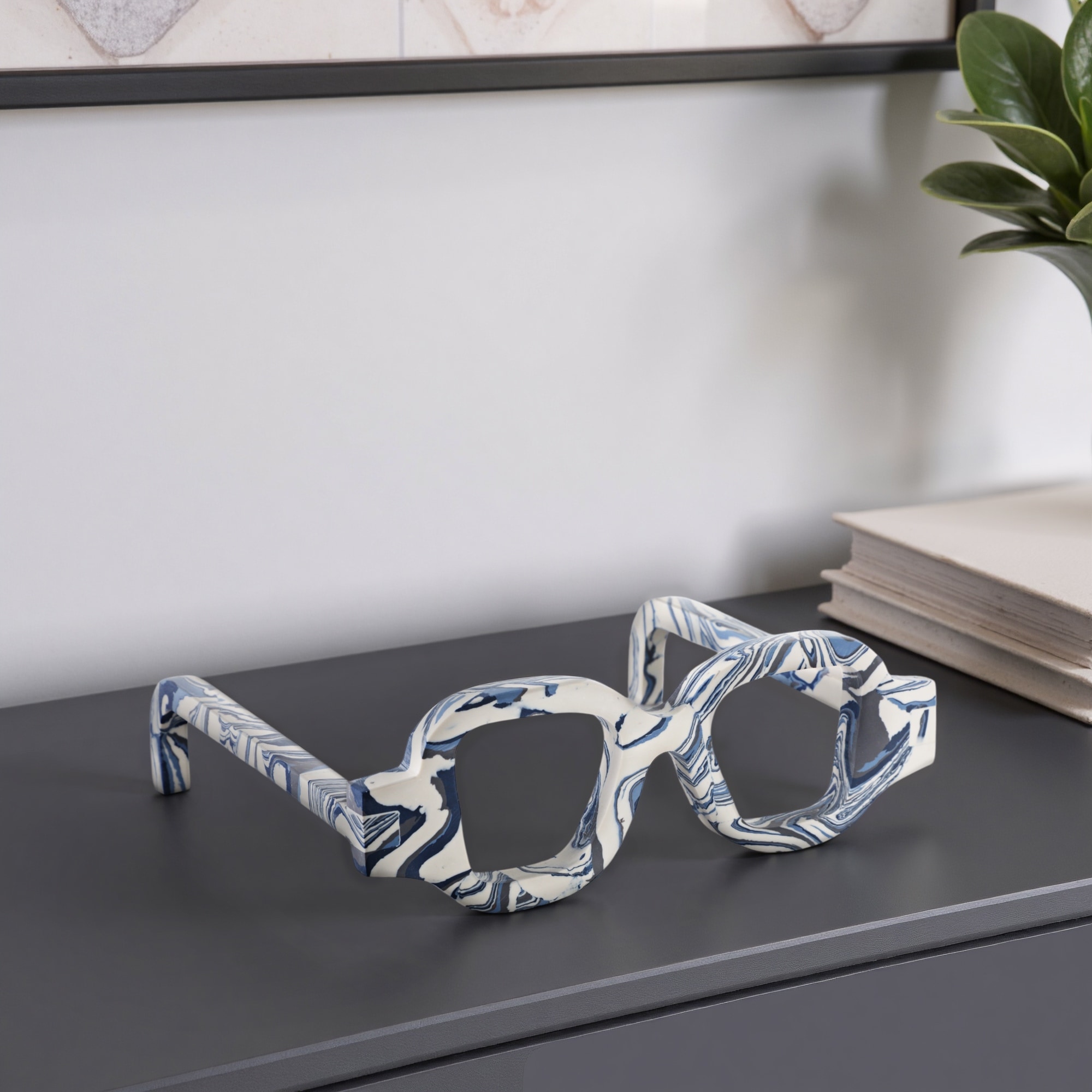 Stone Decorative Object Eyeglasses Shape Carved Sculptural Accent - 9" x 8" x 3"