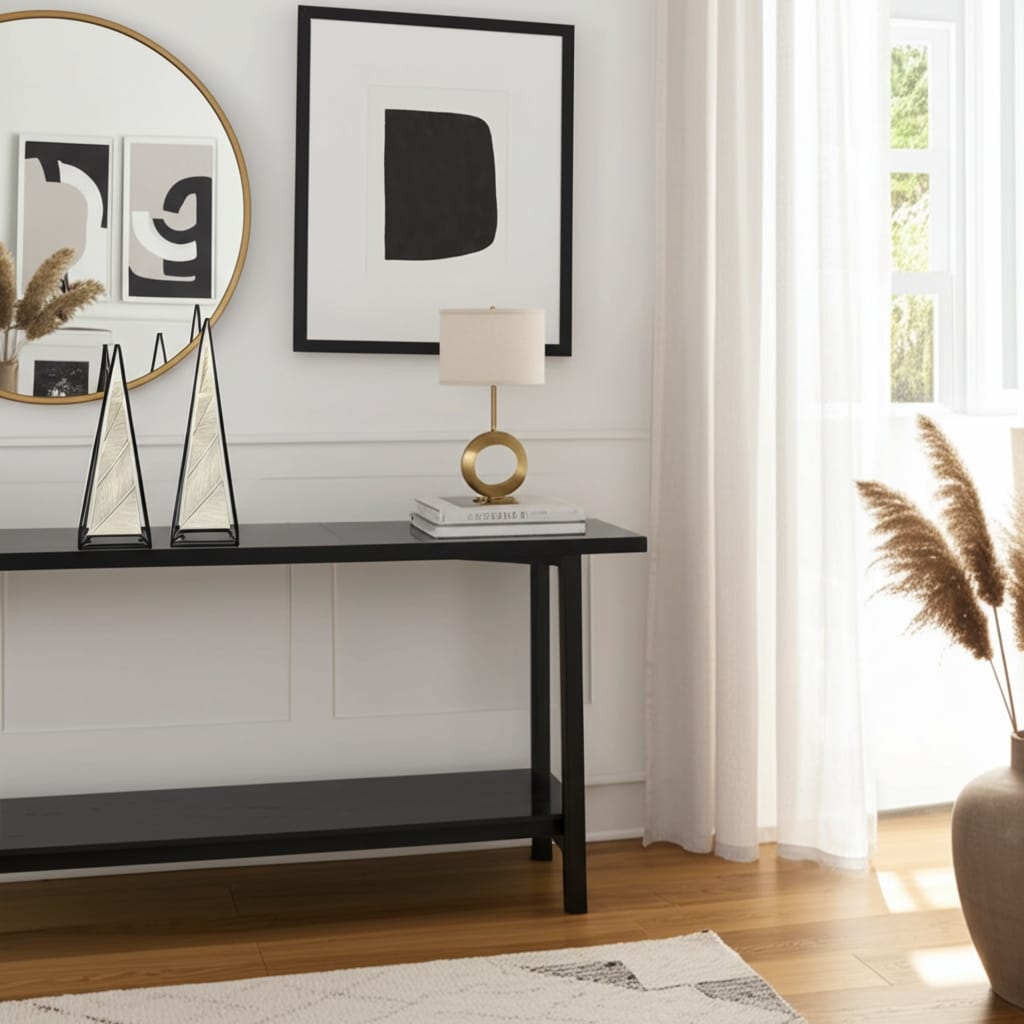 Iron Wood Pyramid Sculpture Geometric Design (Set of 2) - 26/21" Multi - 7" x 7" x 26"