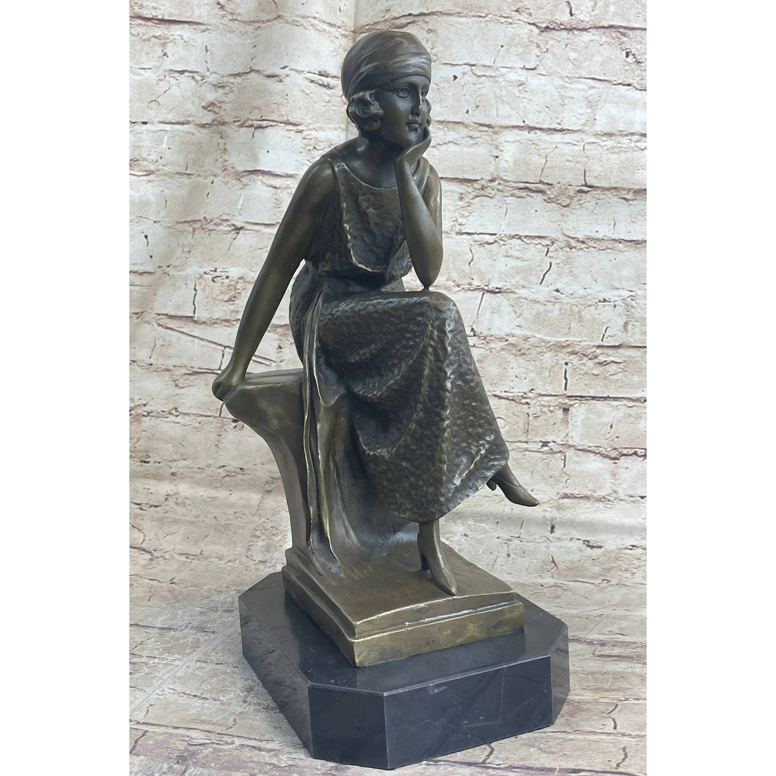 Art Deco Flapper Girl Fashion Model Bronze Metal Statue Sculpture Figurative Art
