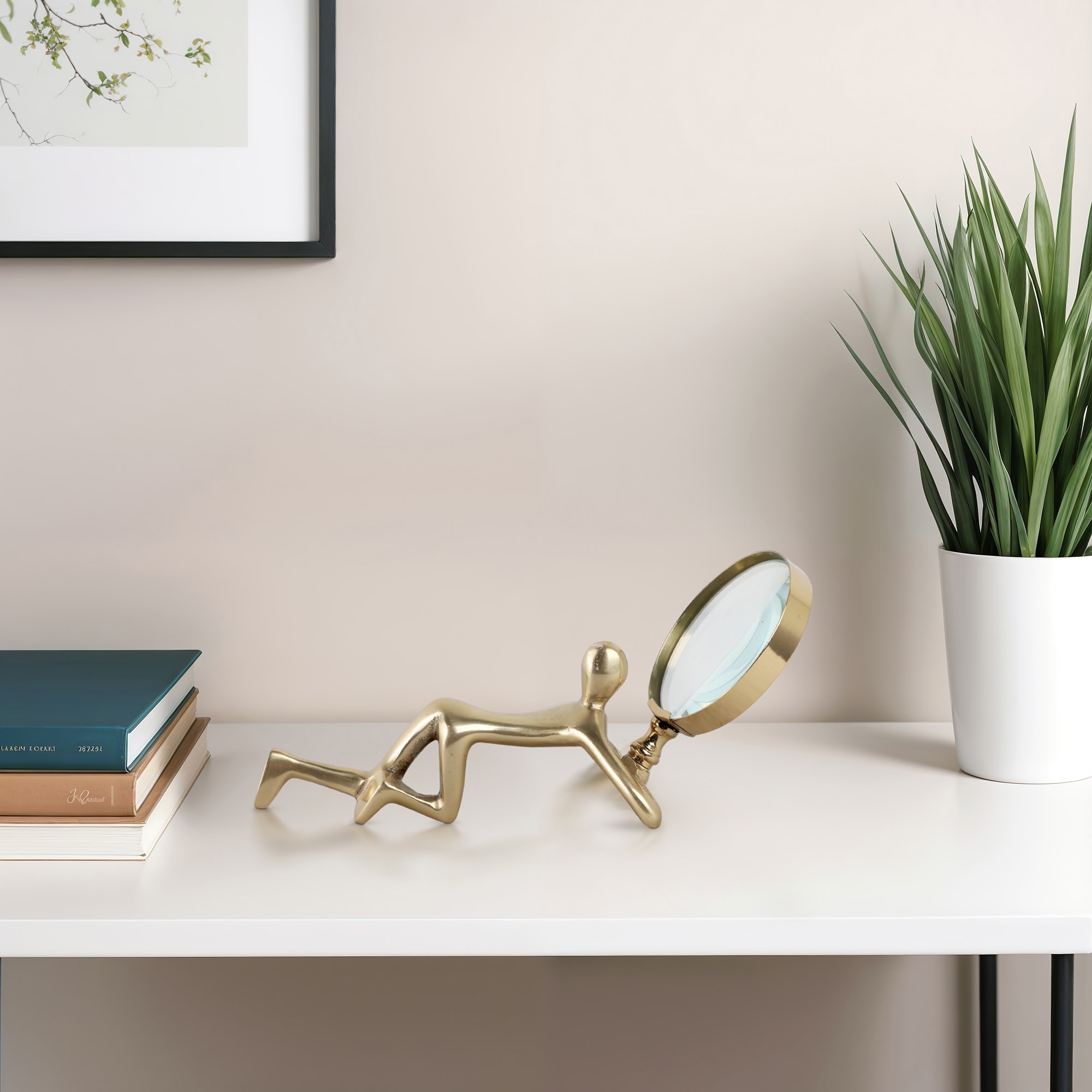 Glass Metal Decorative Object Human Figure Holding Magnifying Glass