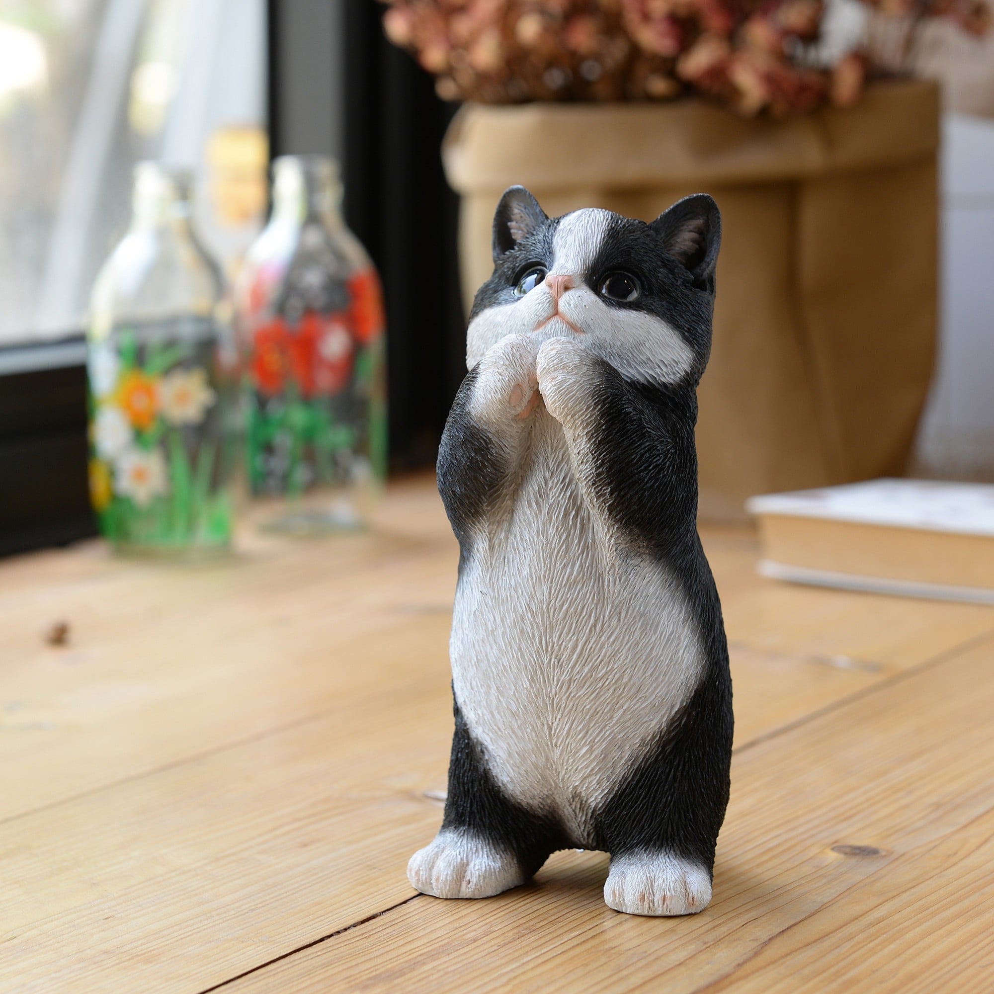 Praying Tabby Kitten Outdoor Garden Statue - 6.75" - Black and White