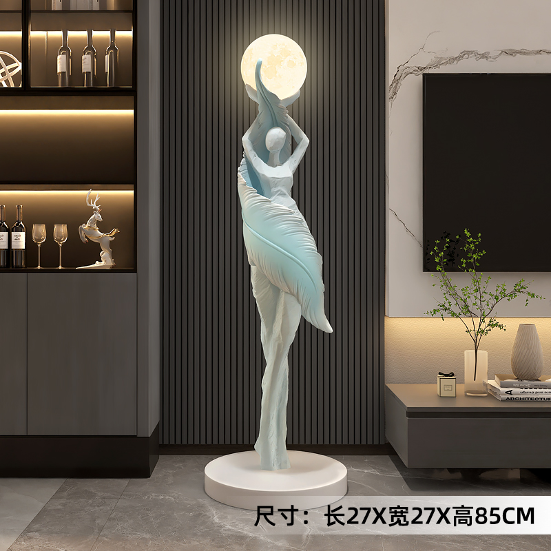 Abstract Girl Figure Sculpture, Large Floor Decor For Living Room, Artistic Home Decor Statue, Modern Welcome Figurine light Blue