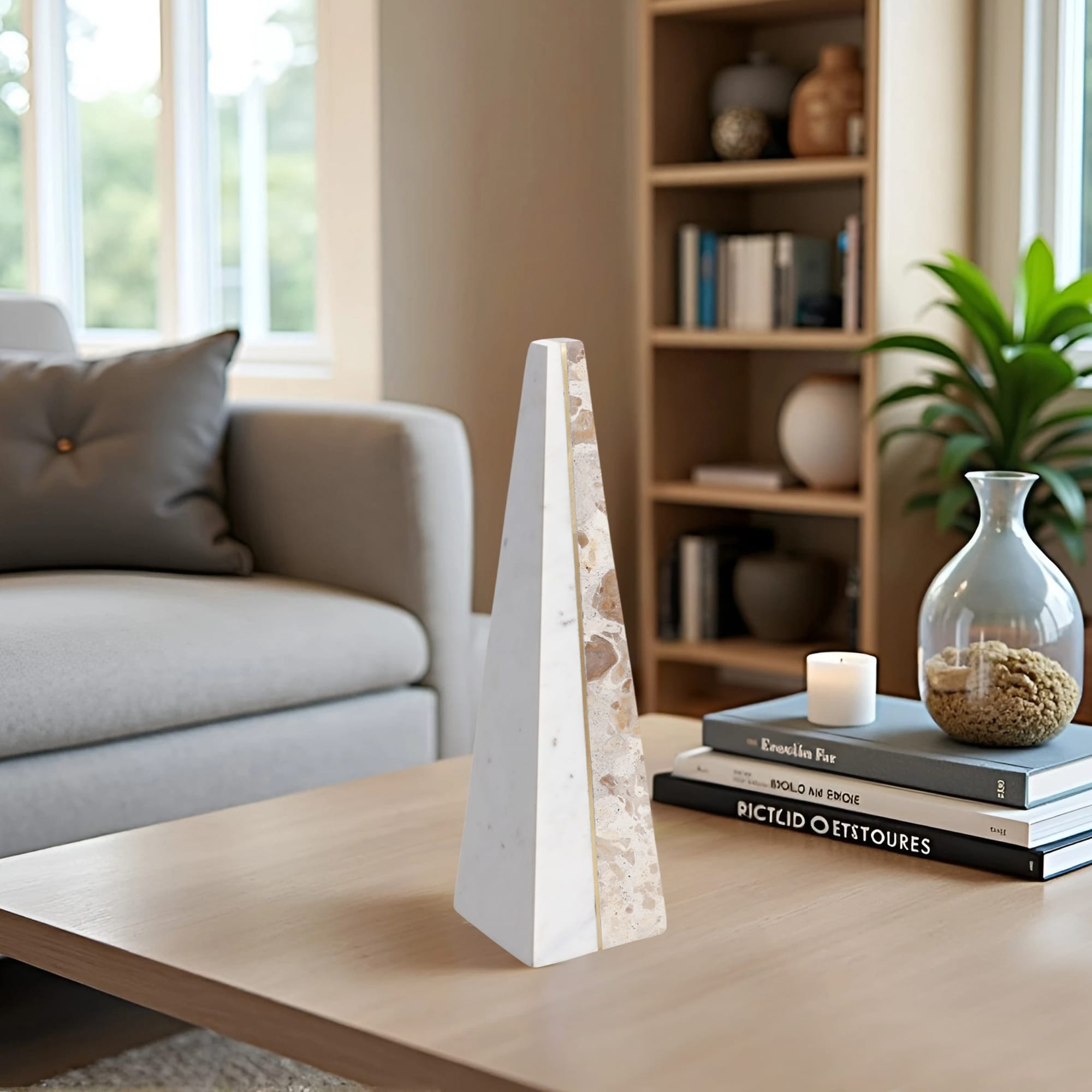 Stone Marble Decorative Object Modern Geometric Split Home Display