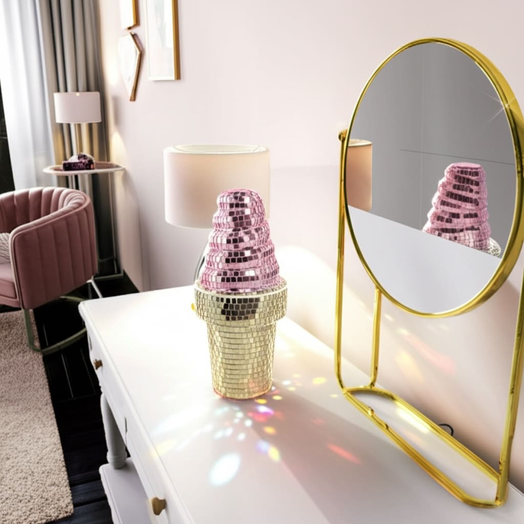 Mosaic Mirror Ice Cream Decorative Figurine - Pink/Gold - 4.25" x 4.25" x 9"