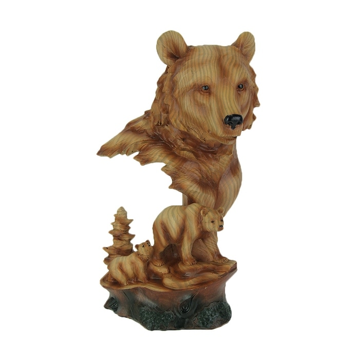 Faux Carved Bear Head And Family Wood Look Statue - 12 X 6.5 X 5.25 inches