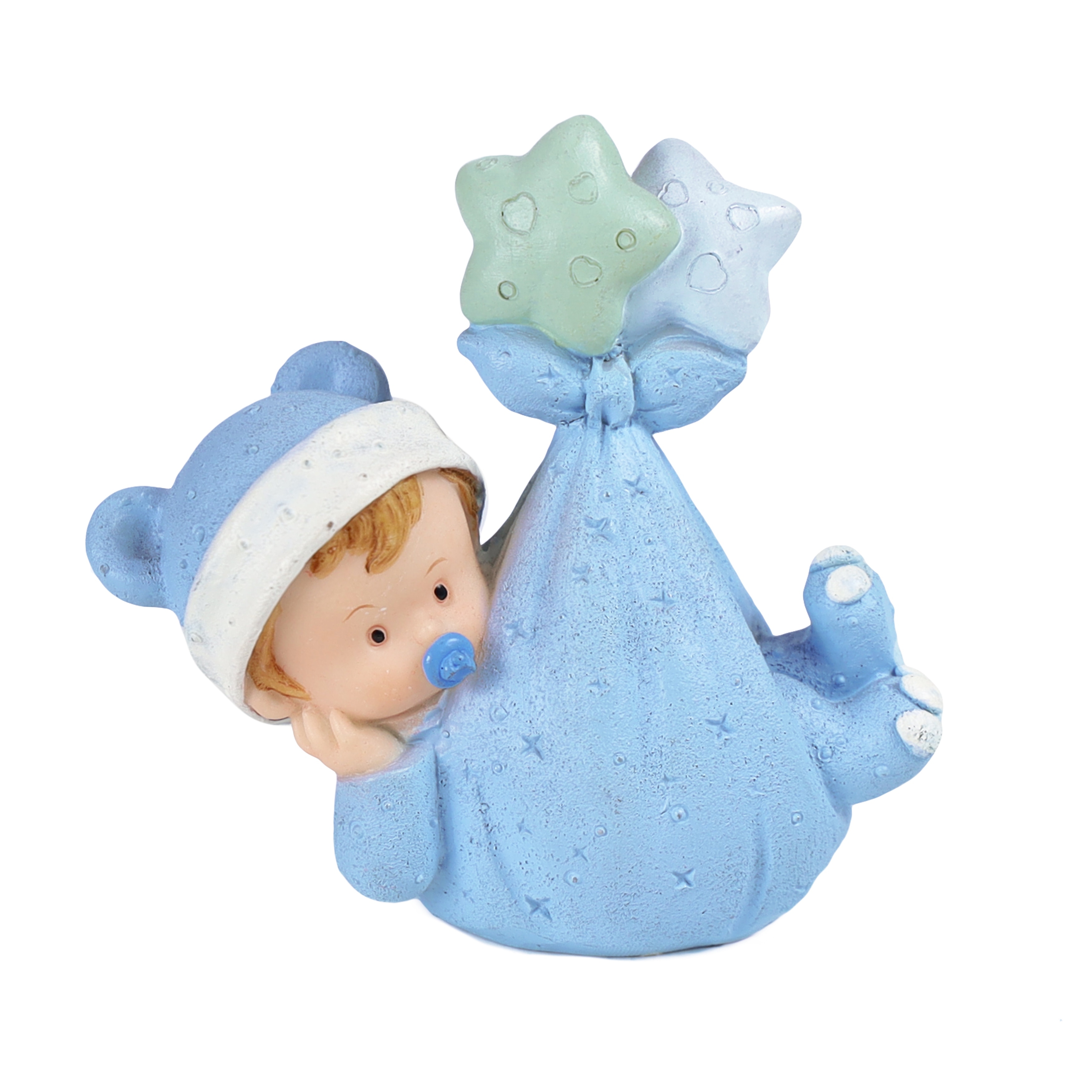 Set of 12 Baby Boy with Blanket Figurine Blue Baby Shower Favor 3.25in - 3" H x 3" W x 1.5" DP