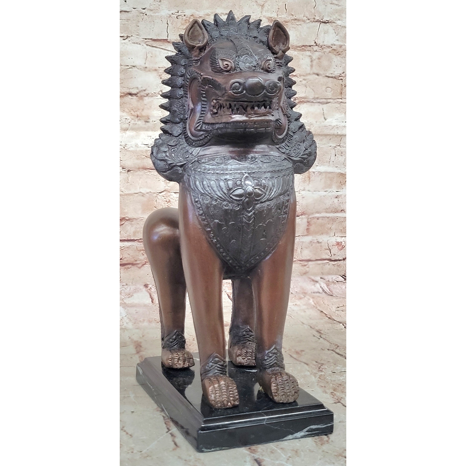 Bronze Foo Dog Guardian Statue – Oriental Protective Lion Sculpture