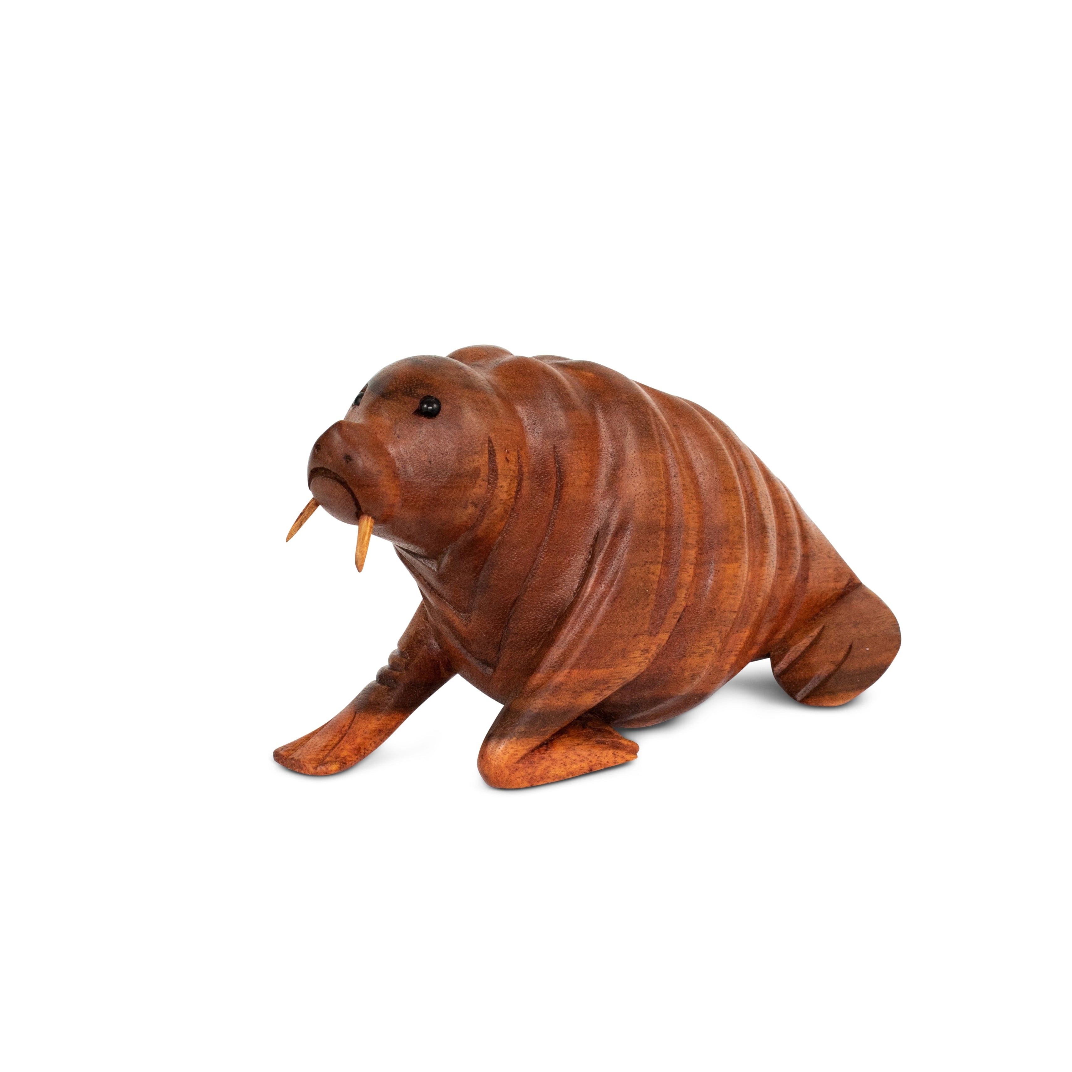 Wood Walrus Figurine Hand Carved Sea Animal Sculpture, Coastal Cabin Decor