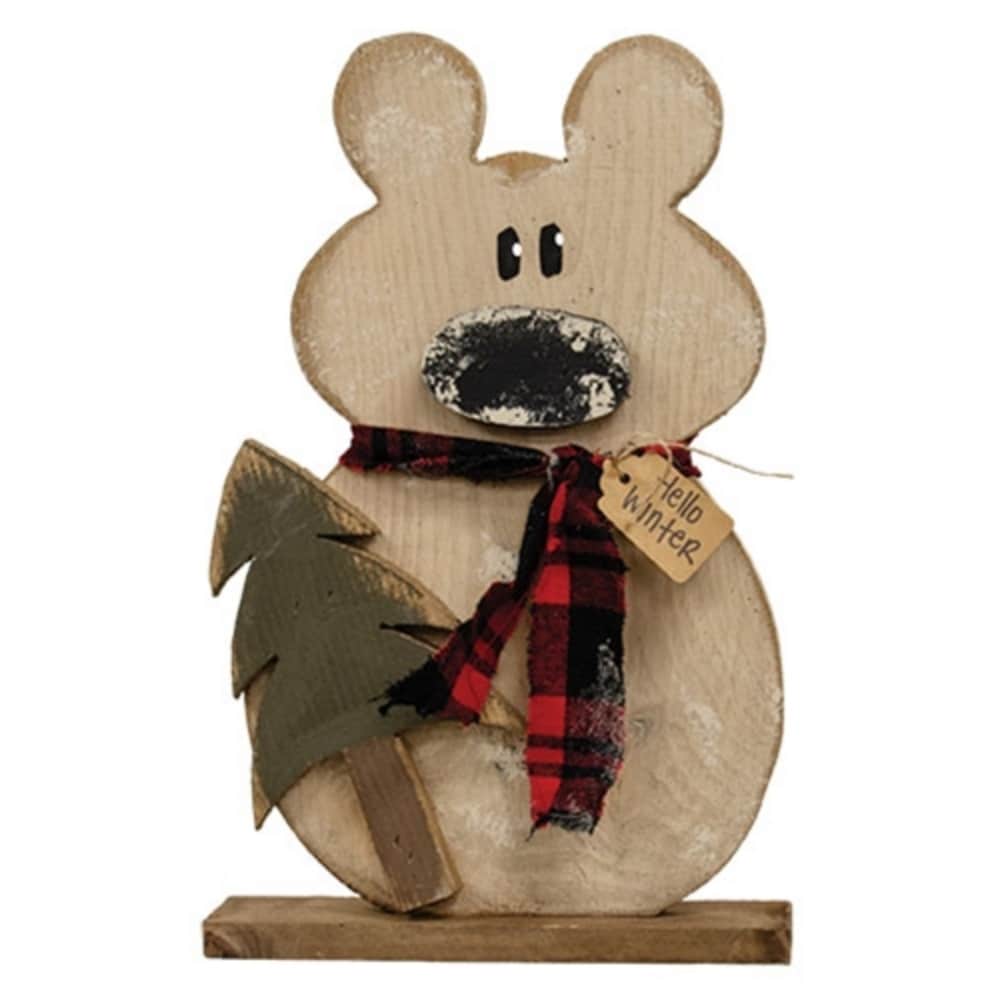Rustic Wood Hello Winter Black Bear on Base With Tree - 18-1/2"H