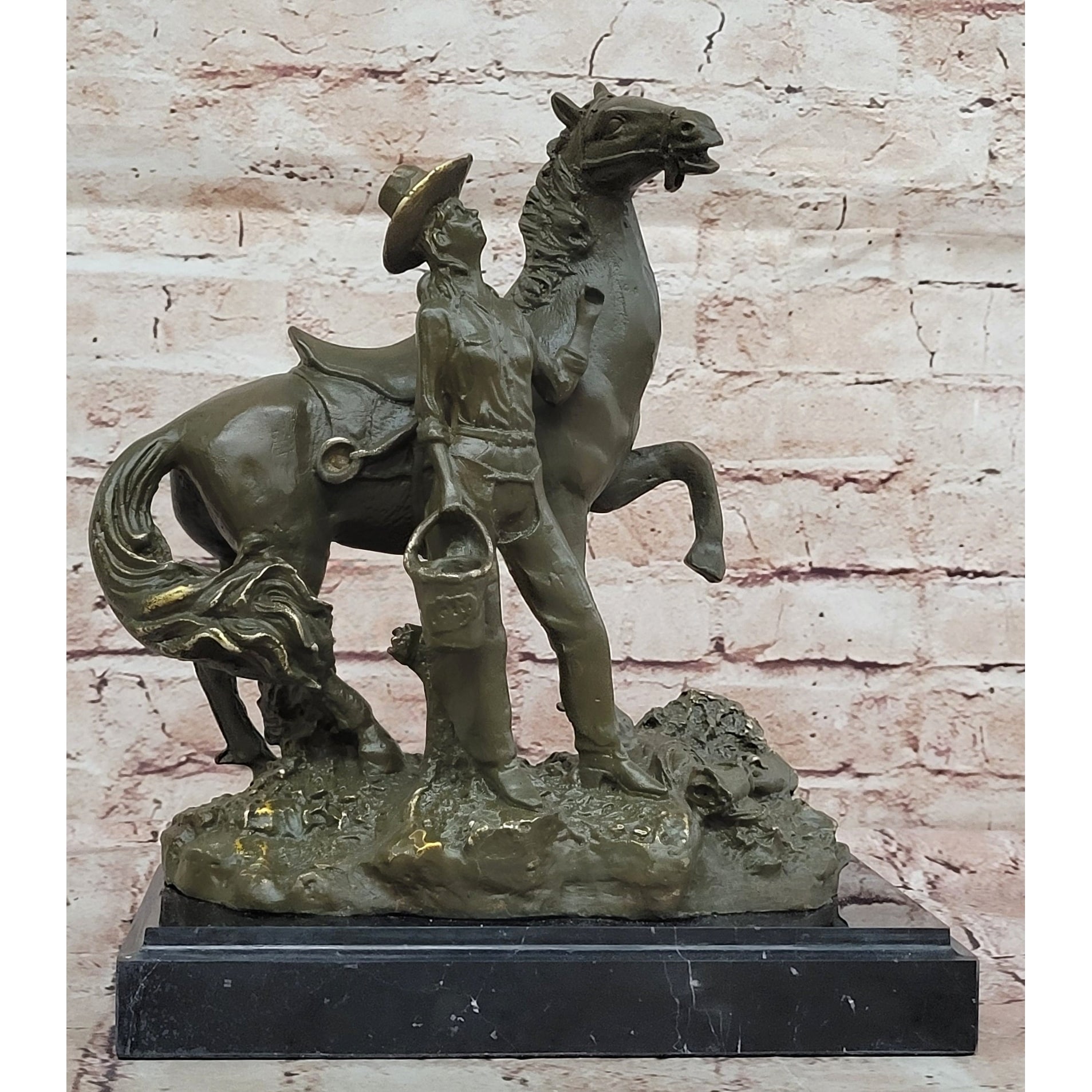 Cowgirl With Rearing Horse Bronze Sculpture - Western Ranch Equestrian Art