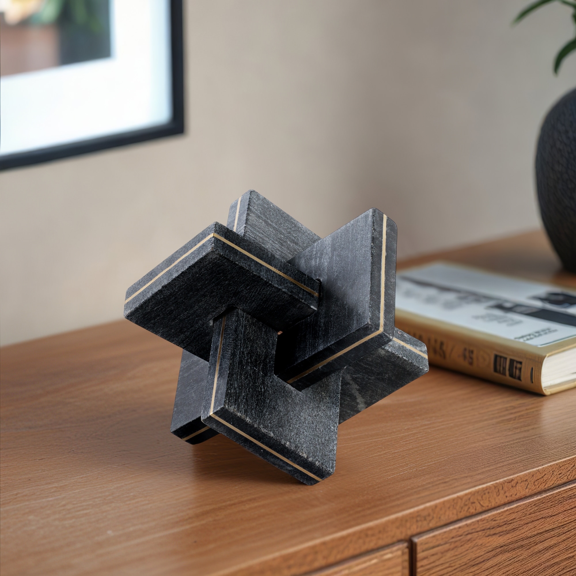 Stone Metal Decorative Object Interlocking Modern Geometric Structure