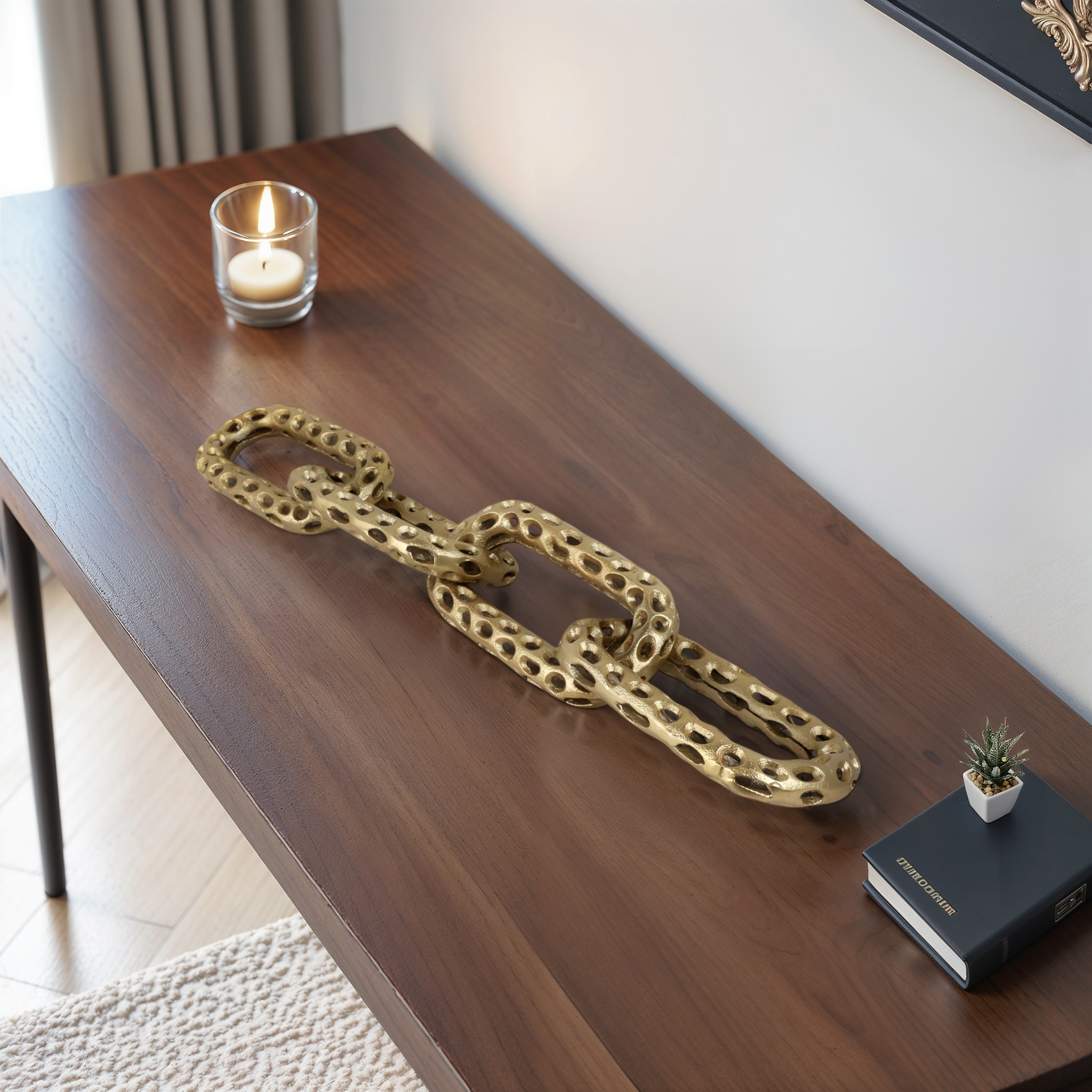Metal Coastal Chain Sculpture with Textured Links and Openwork Design