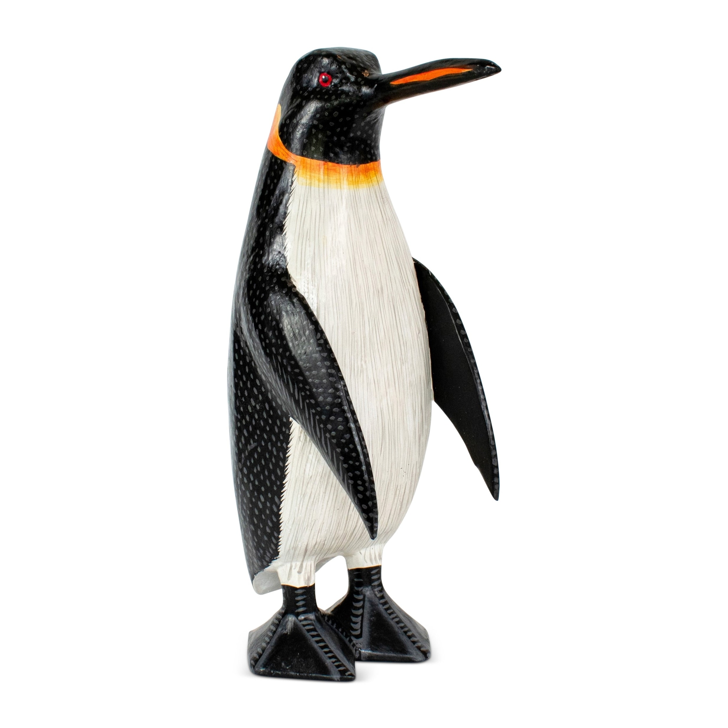 Wood Penguin Figurine Hand Carved Arctic Animal Statue, Winter Shelf Decor