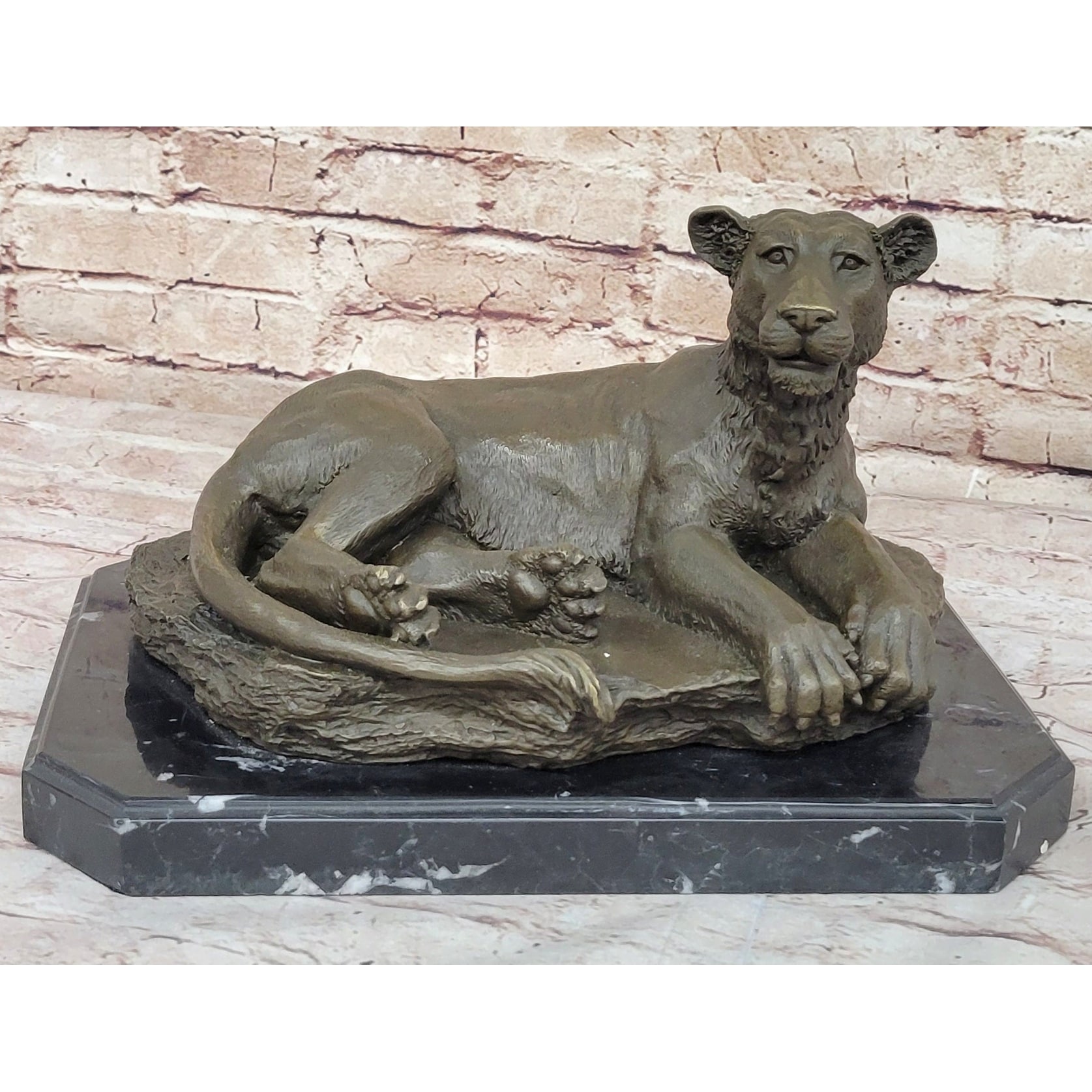 Art Deco Large Female African Wildlife Imitative Lion Bronze Sculpture Marble Statue Decor