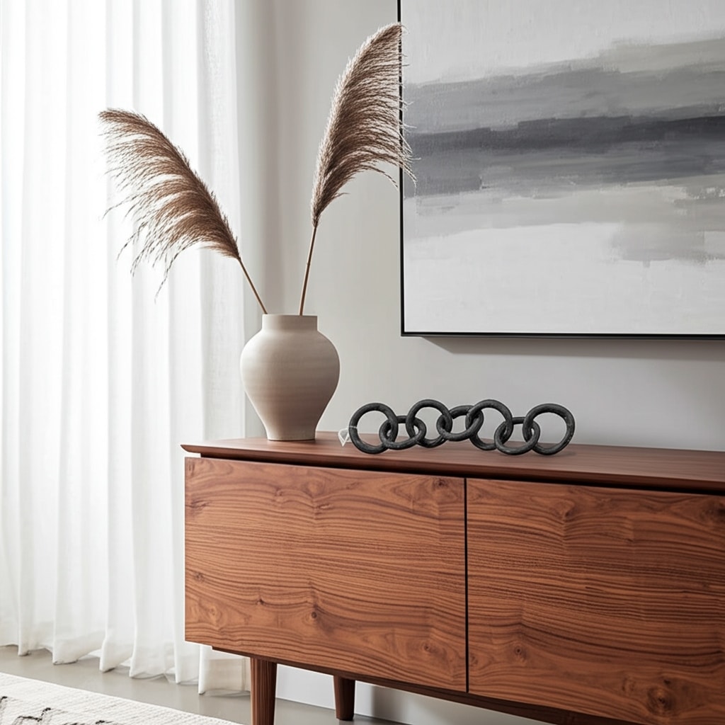 Metal Object Linked Rings Sculpture Interlocking Circular Chain Design