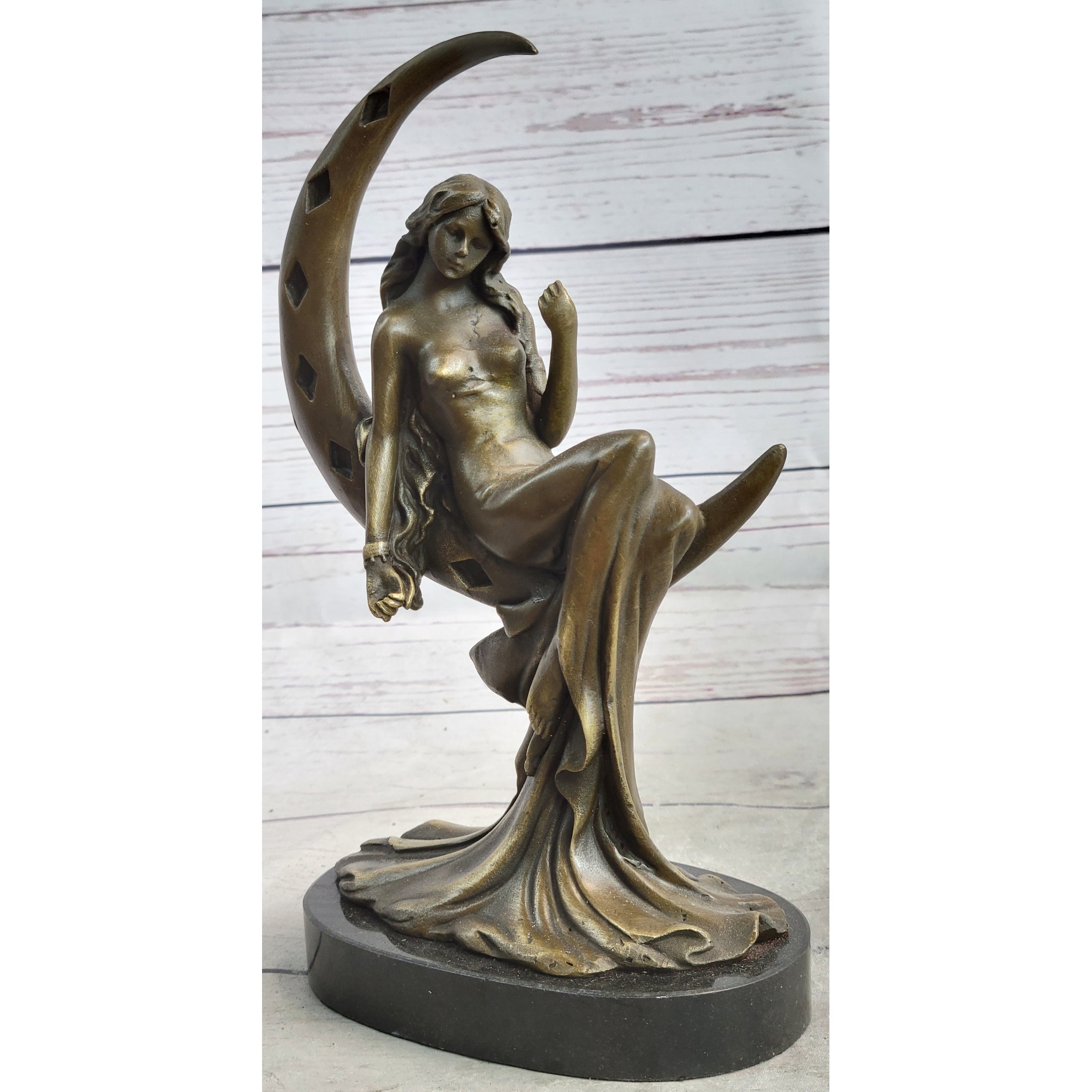 High Life Girl On Moon Bronze Statue Sculpture Figure 9 Inches X 6 Inches