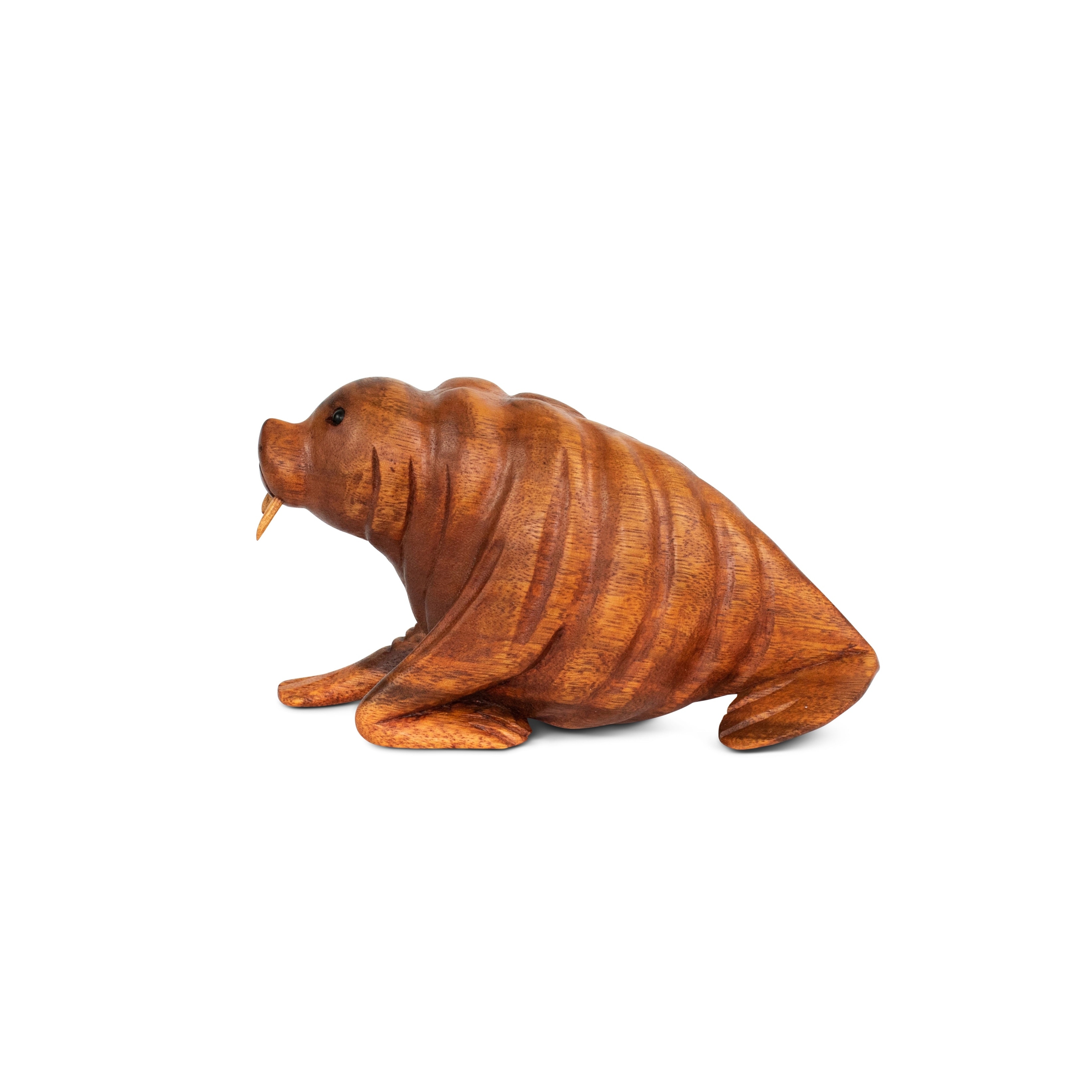Wood Walrus Figurine Hand Carved Sea Animal Sculpture, Coastal Cabin Decor