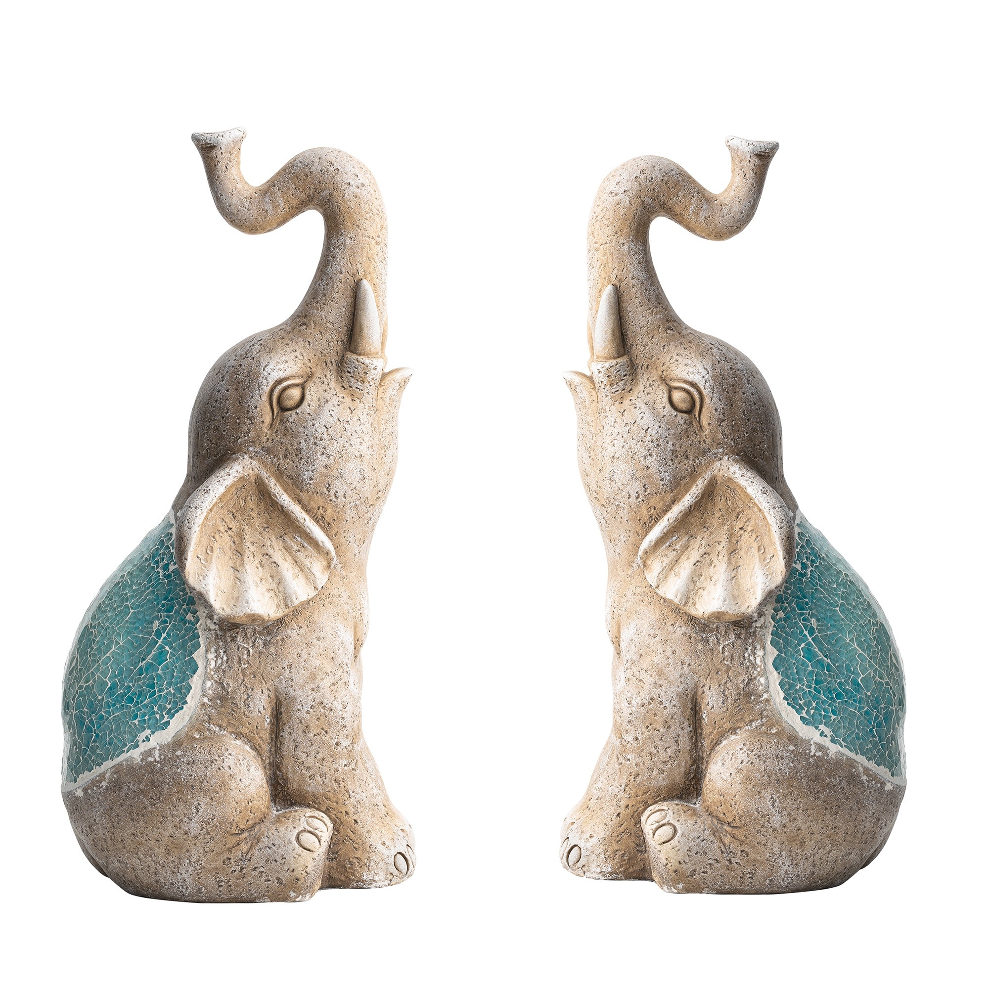 Glitzhome Faux Granite Mosaic Sitting Elephant Sea Horse Mermaid Garden Statue Ocean Figurine