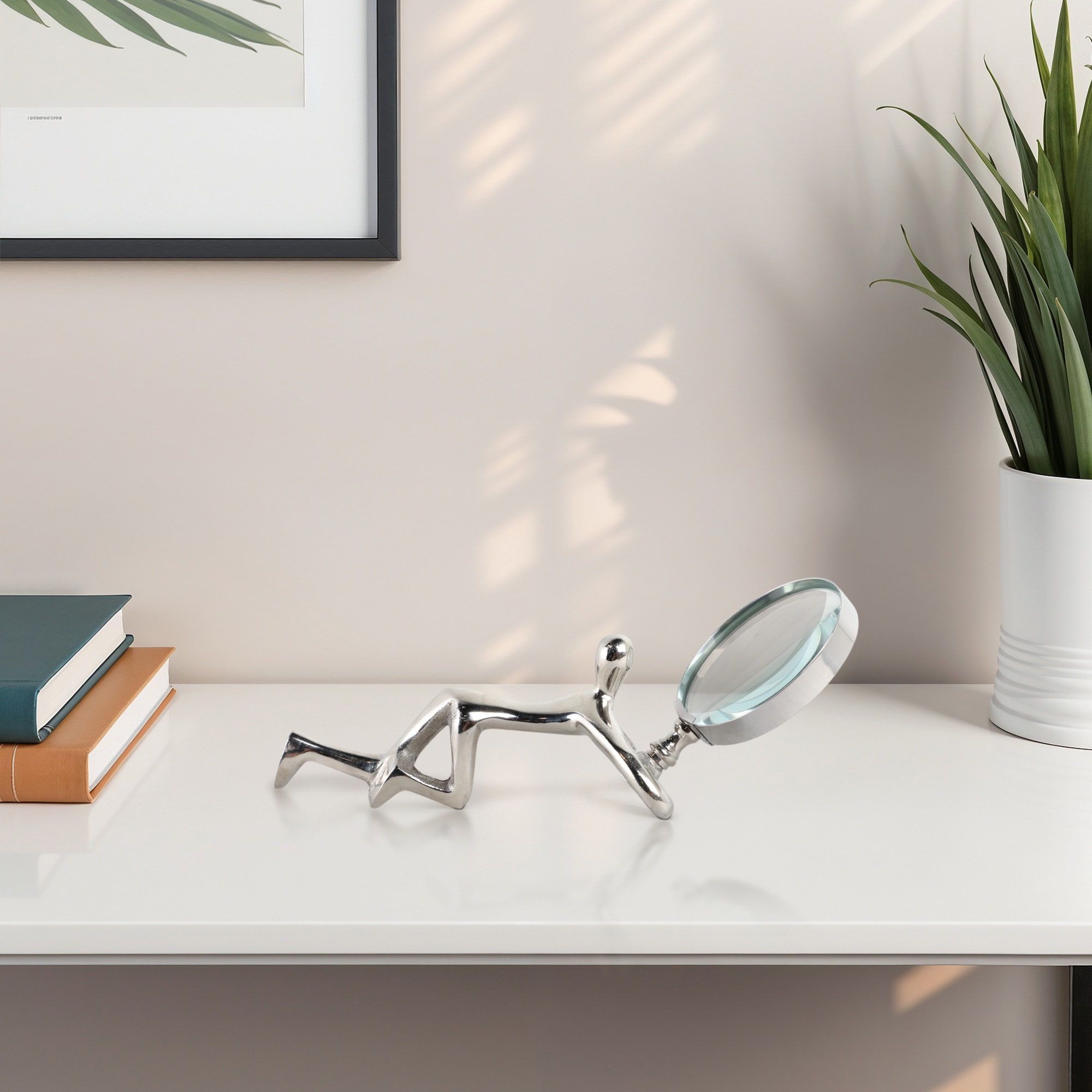 Glass Metal Decorative Object Human Figure Holding Magnifying Glass