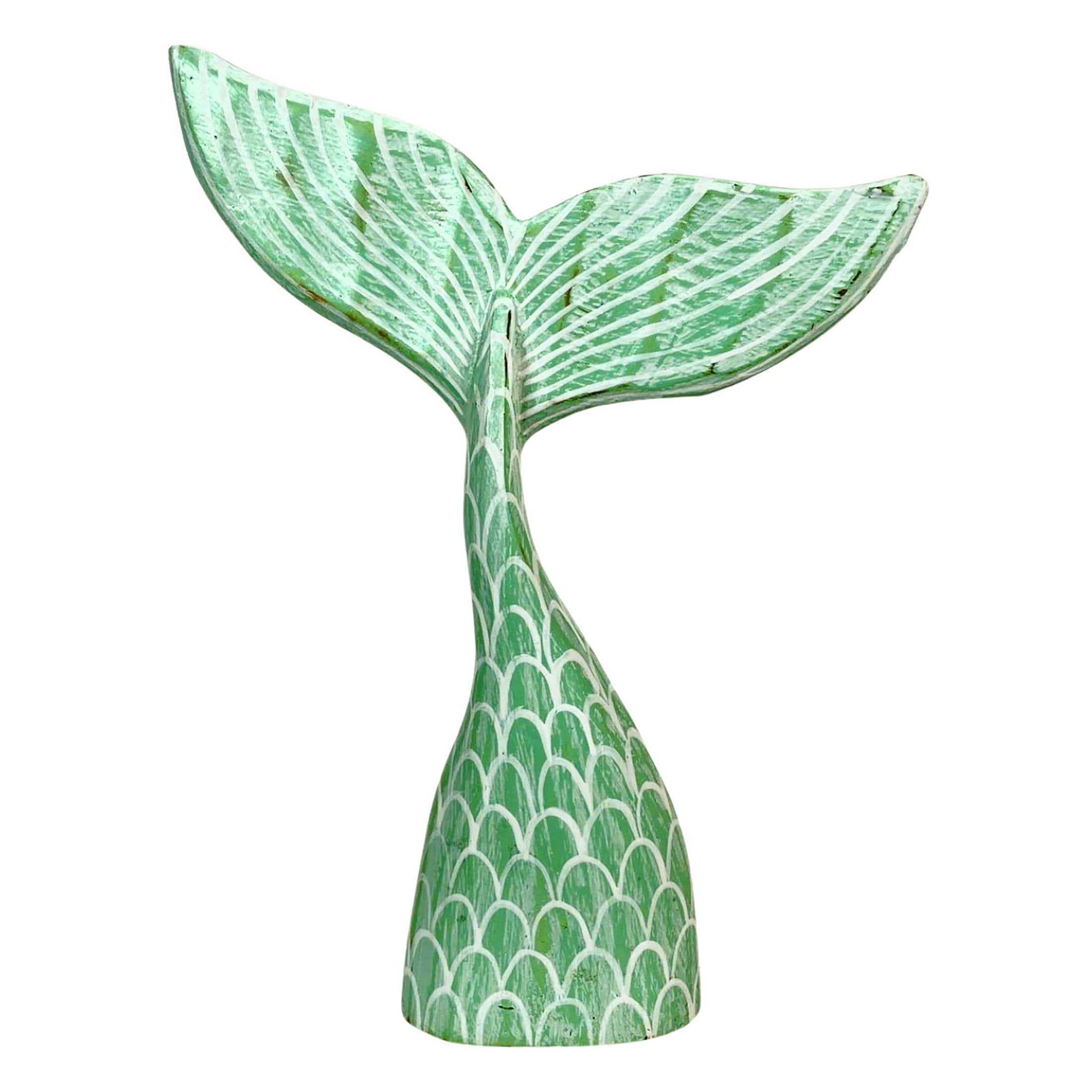 Turquoise Wood Mermaid Tail Sculpture 13.75" Coastal Table Decor Ocean - 13.5 X 10 X 2.5 inches