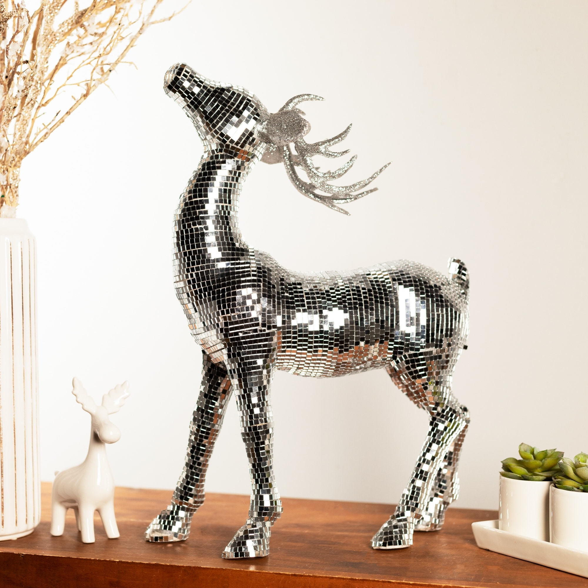 Mirrored and Glittered Standing Deer Christmas Figure - 19" - Silver
