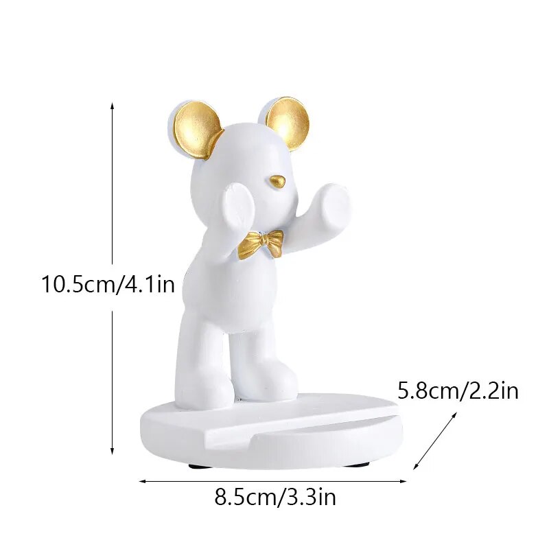 Resin Violent Bear Miniature Figurine: Cute Mobile Phone Stand For Home, Office, Living Room Unique Gift Idea A White