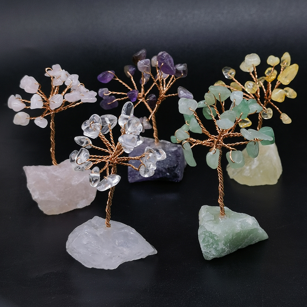 Natural Gemstone Crystal Money Lucky Tree, Feng Shui Raw Stone Base For Home, Office Desk & Living Room Decor random Stone 20pc