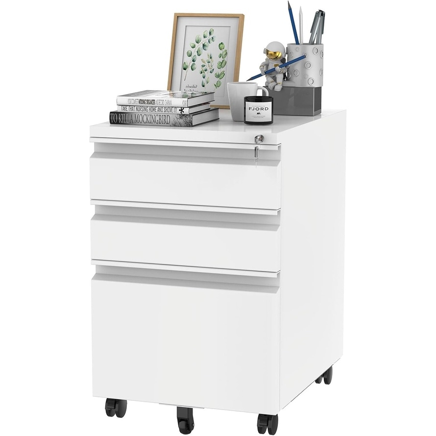 3 Drawer Mobile File Cabinet with Lock, Under Desk Storage for Home Office, Organizer for Legal/Letter/A4 Files, White
