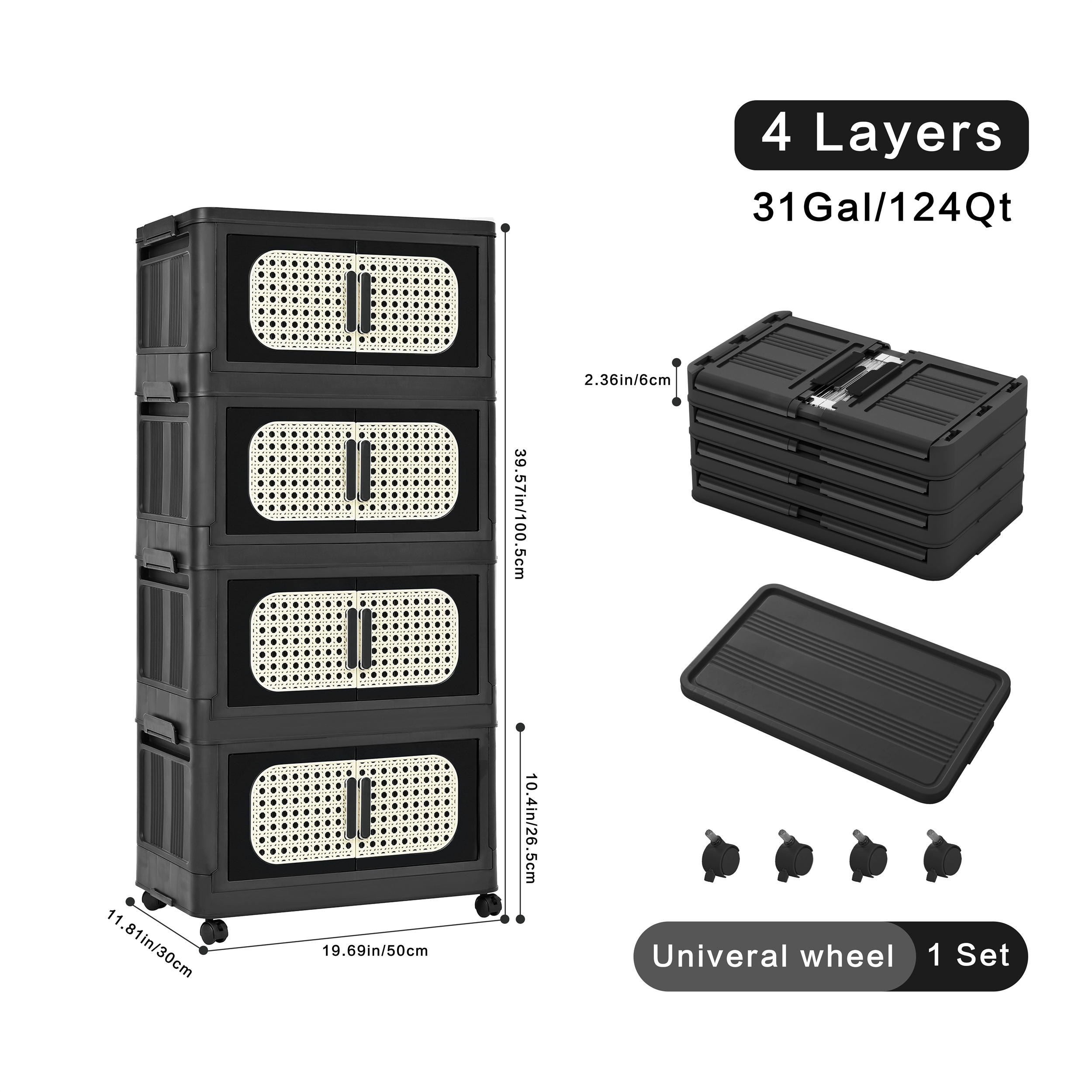 Foldable Storage Cabinet with Wheels, Multi-Layer Shelves, Durable PP