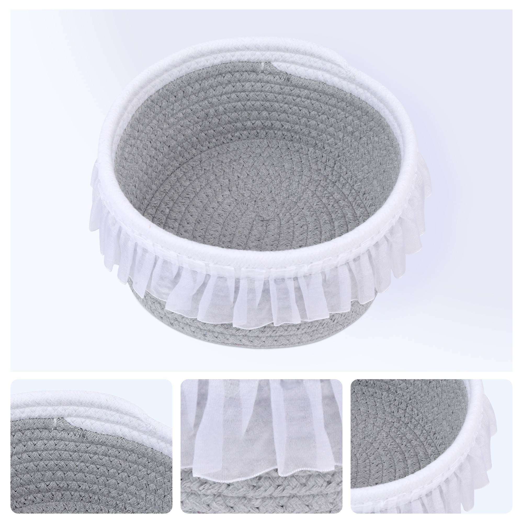 1 Pack Woven Storage Basket, Self-supporting Closet Storage Bin with Lace Trim for Key Tray Bowl for Entryway Desk, Home Decor