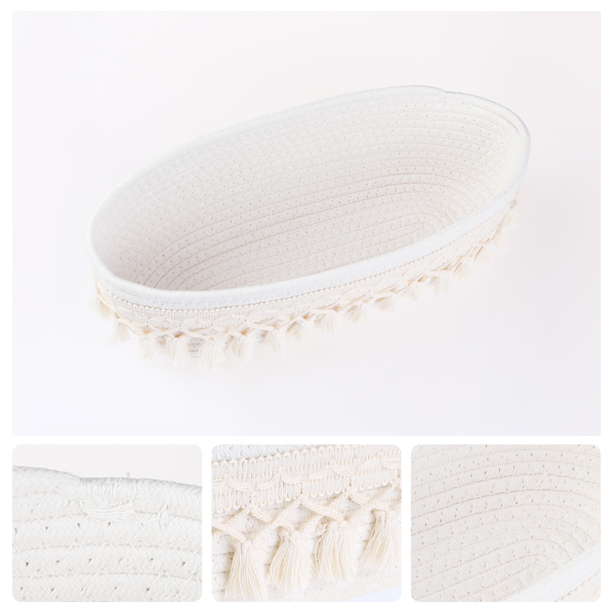 1 Pack Woven Storage Basket, Self-supporting Closet Oval Storage Bin with Tassels for Key Tray Bowl 13x5.9x3.9in - 13*5.9*3.9in