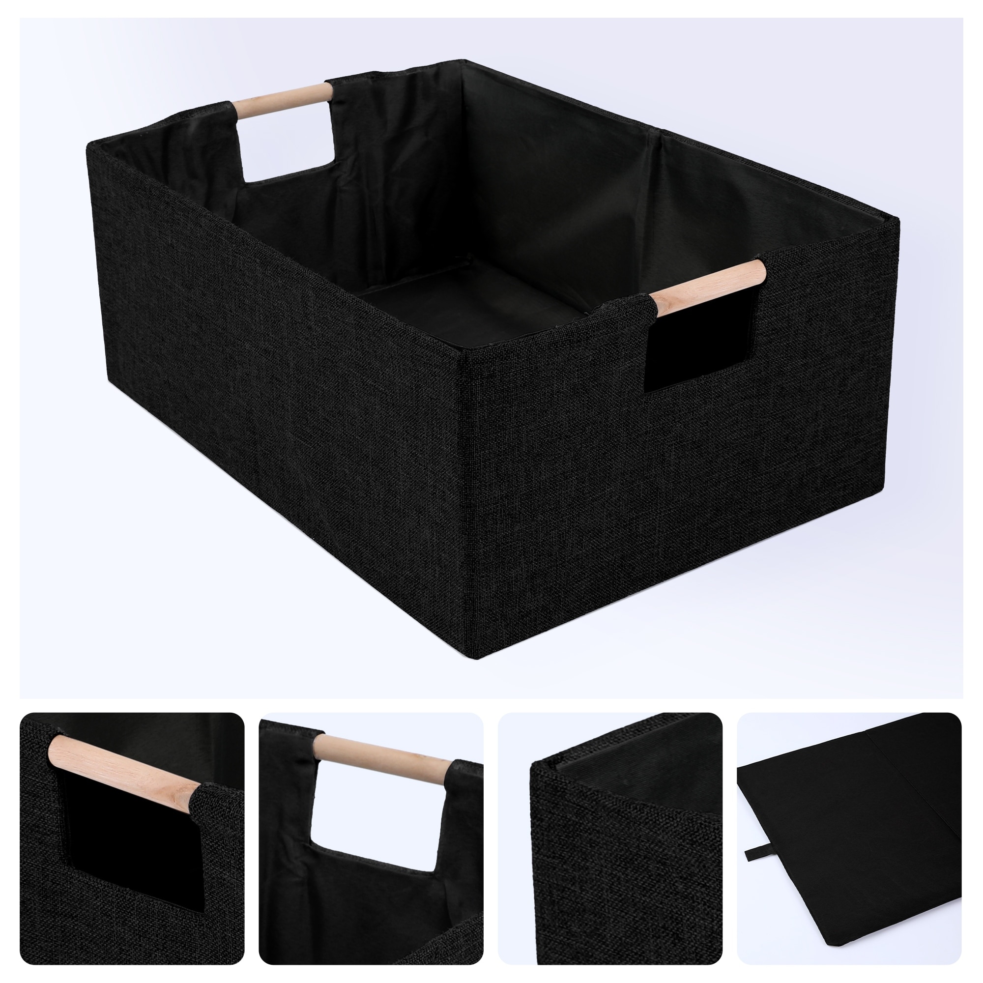 Foldable Storage Basket with Wood Handles and Bottom Board, Fabric Storage Bin Featuring, 1 Pack Organizer for Clothing