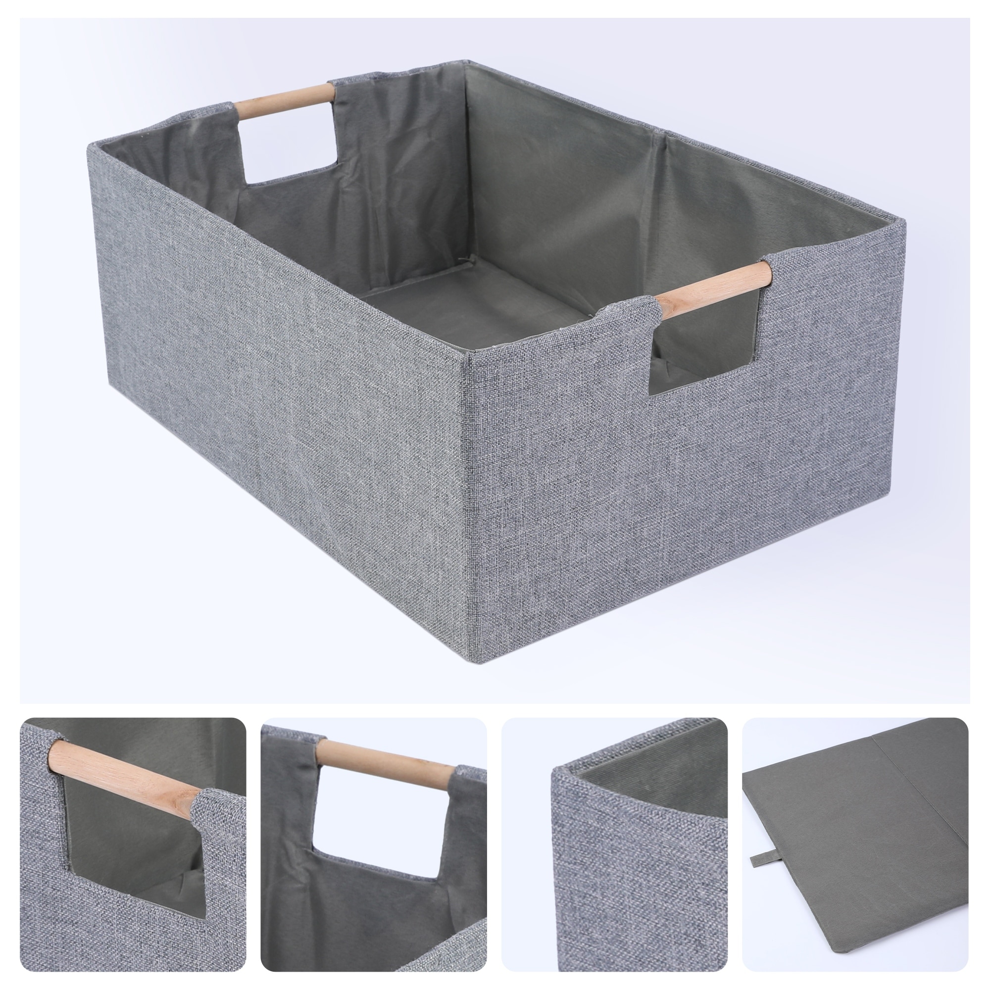 Foldable Storage Basket with Wood Handles and Bottom Board, Fabric Storage Bin Featuring, 1 Pack Organizer for Clothing