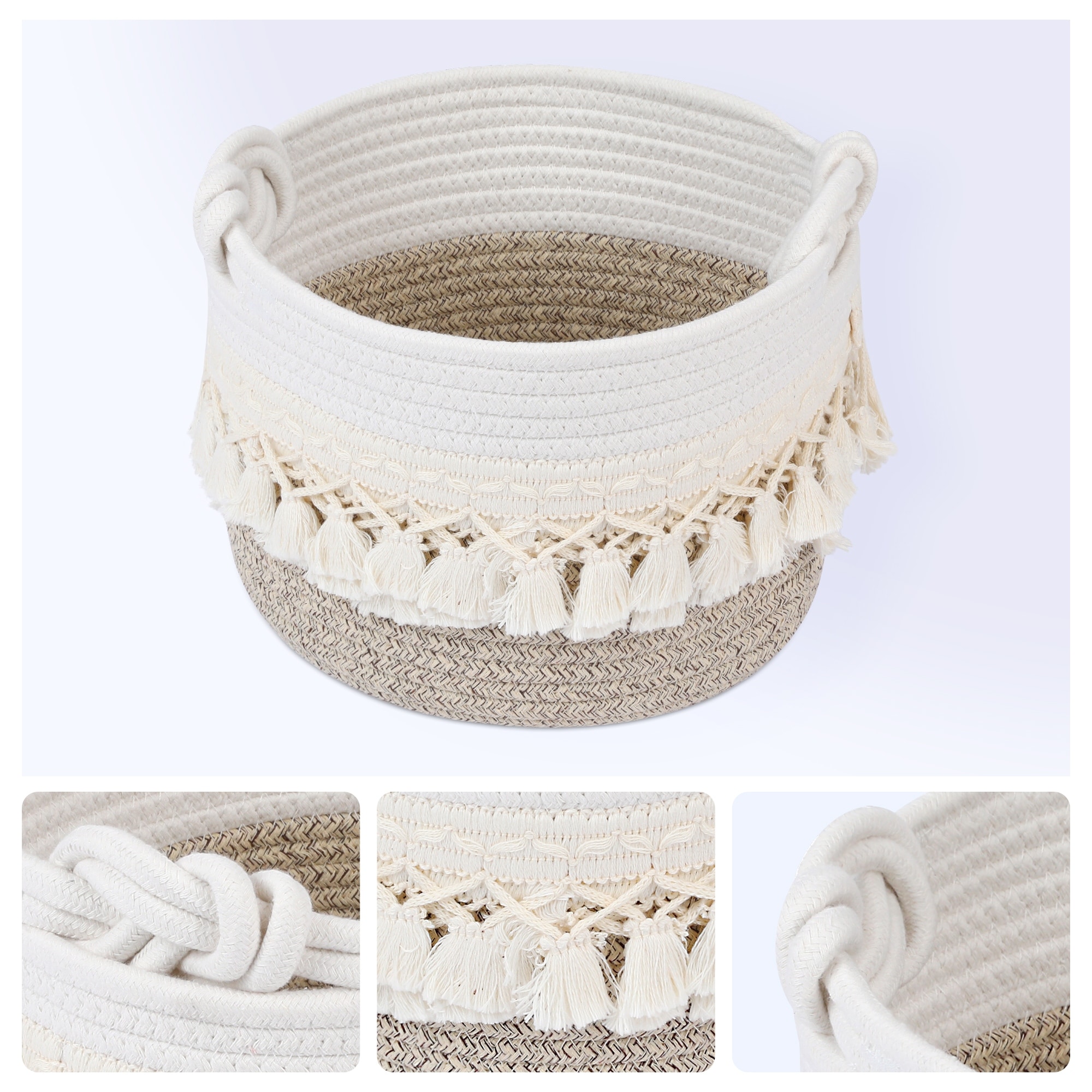 1 Pack Woven Storage Basket, Self-supporting Closet Storage Bin with Tassel for Key Tray Bowl for Entryway Desk 9.4x6.7in