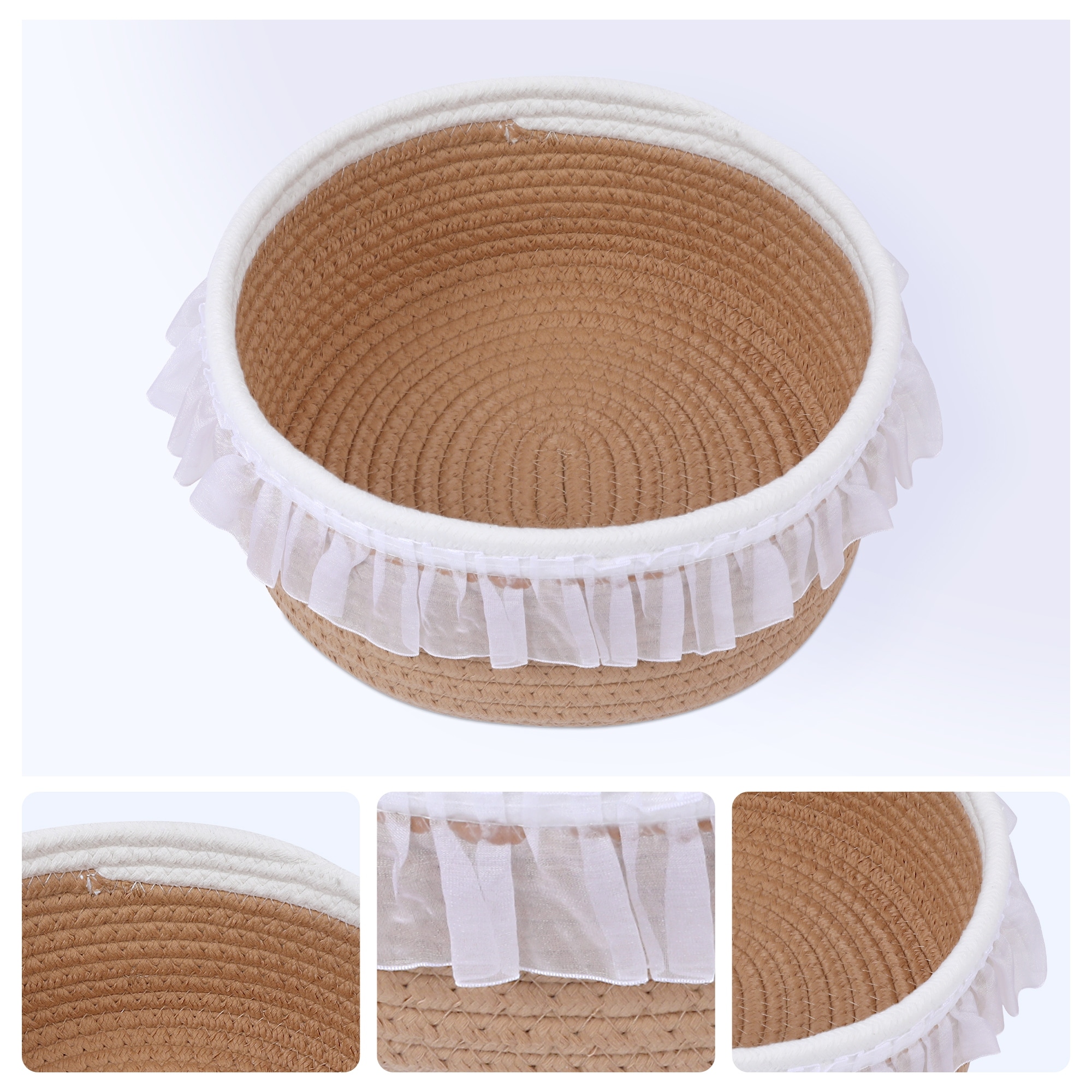 1 Pack Woven Storage Basket, Self-supporting Closet Storage Bin with Lace Trim for Key Tray Bowl for Entryway Desk, Home Decor