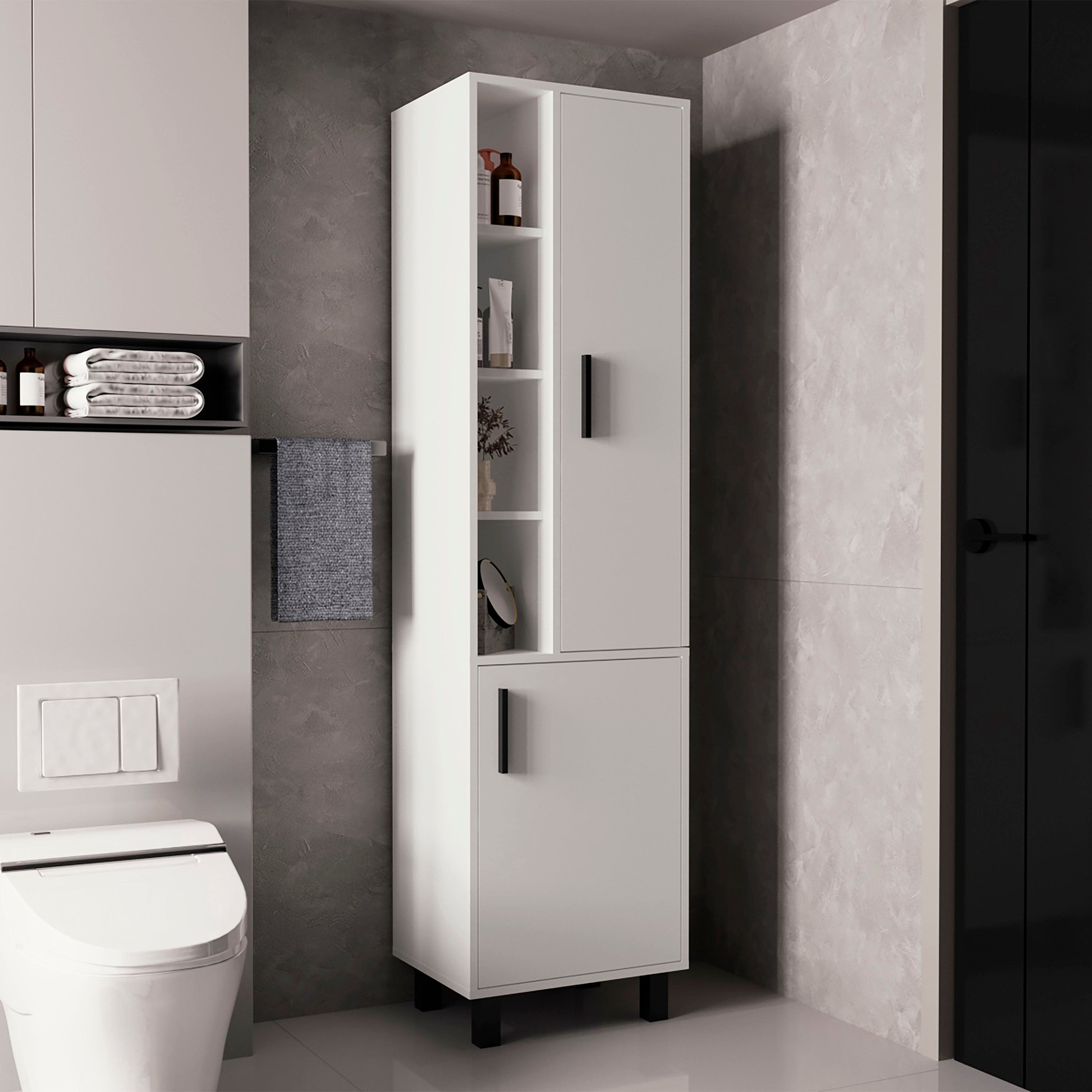 Stanton Tall Storage Cabinet With Two Doors And Three Open Shelves - N/A