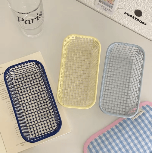INS Style Metal Desktop Storage Basket For Stationery, Photocards And Makeup dark Blue