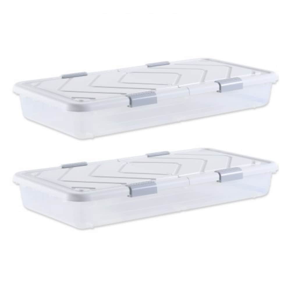 57L Clear Plastic 2 Pack Extra Large Under Bed Storage Organizer with Wheels and Stackable - 39.8 x 20.1 x 5.9 inch