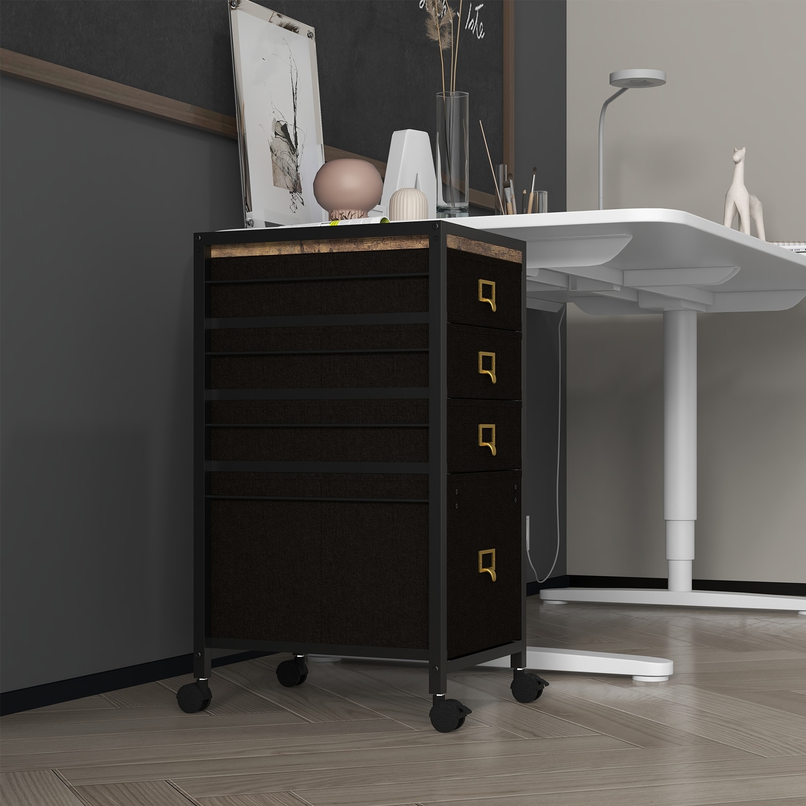 Rolling Storage Cart with 4 Drawers and 2-Tier Open Shelves - 25.0" x 14.5" x 29.5"(L x W x H)
