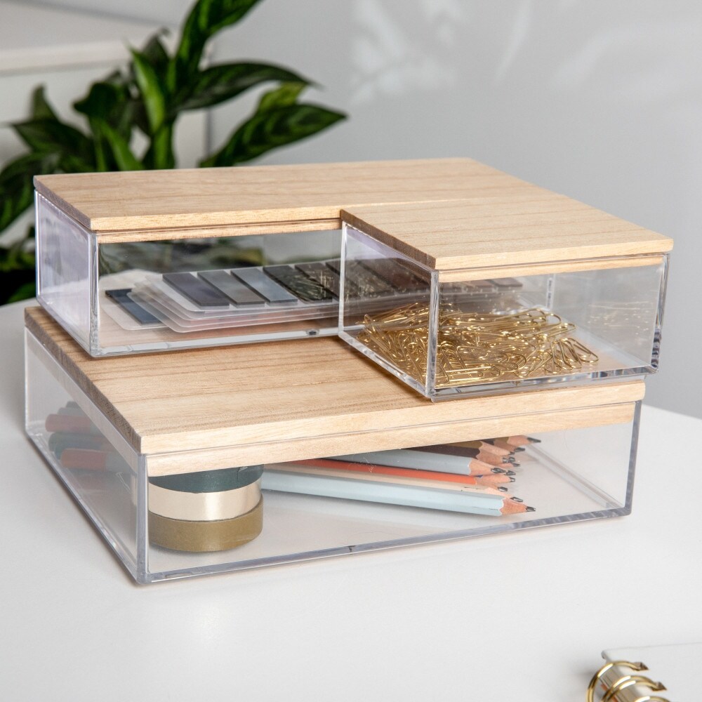 Martha Stewart Premium Plastic Storage Bins with Wooden Lids