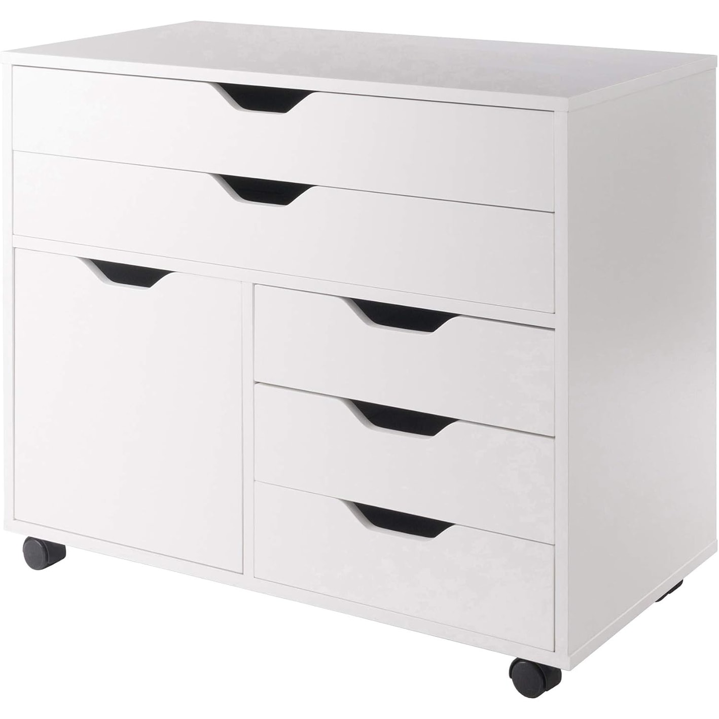 3-Section Mobile Cabinet with 5 Drawers, White, for Living Room and Home Office