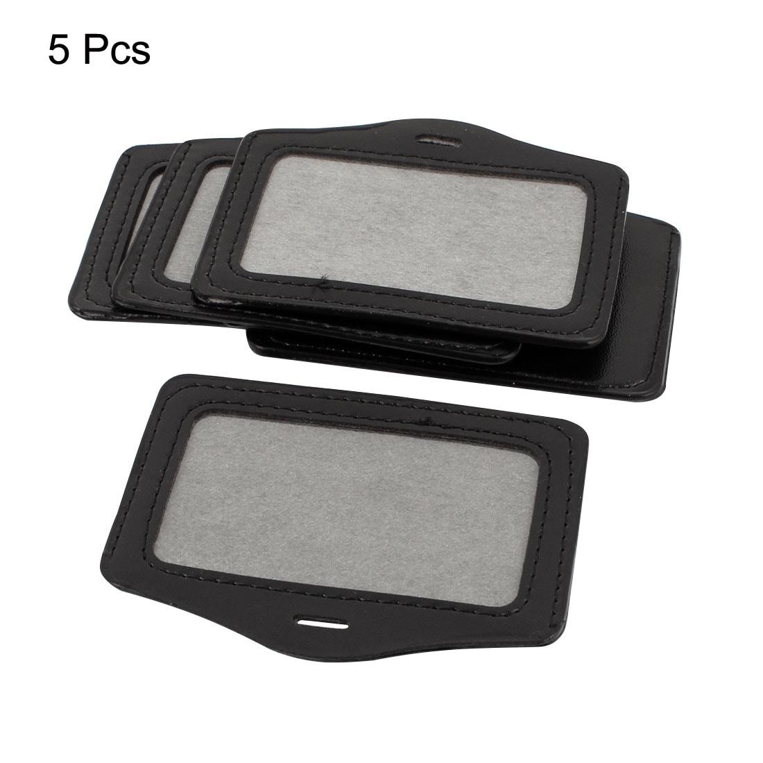 5pcs Faux Leather Horizontal Name Work ID Card Holders 9cmx5.5cm Black - 5 Pcs