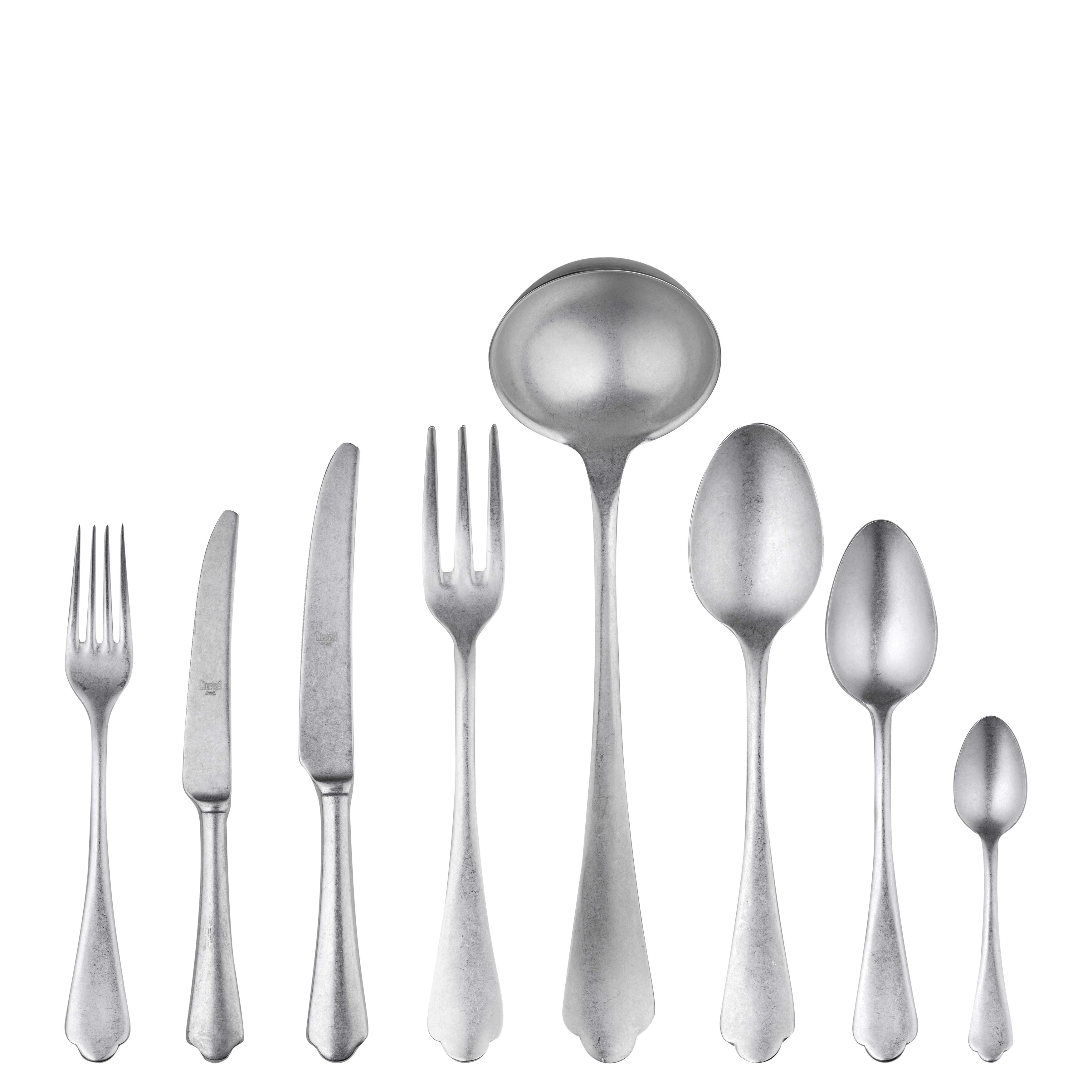 Mepra Epoque Flatware Set with H/H Knives - 48 Pieces - Pewter