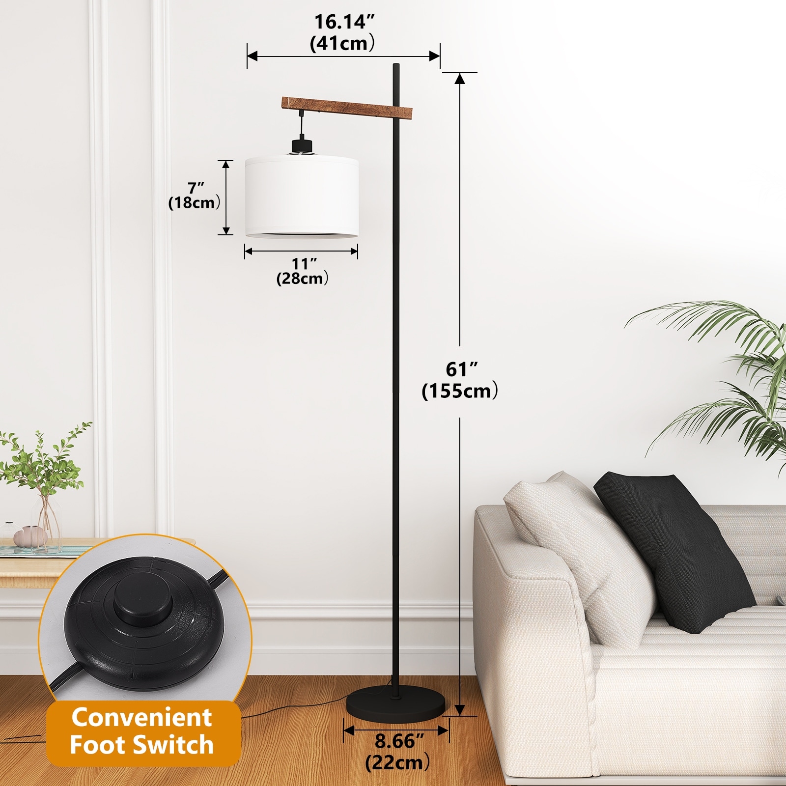 Black Wood Column Floor Lamp with Off White Fabric Rectangular Shade Pull Chain - 11.25” x 10.5” x 72” (D x W x H)