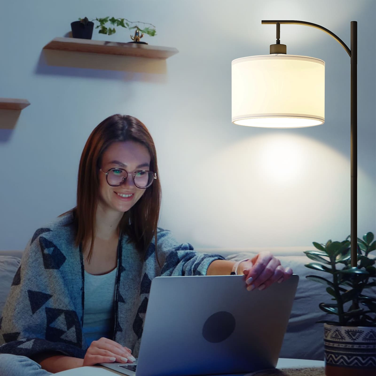 Tall Corner Floor Lamp, Standing Light for Living Room, Bedroom & Office Space Illumination, Bamboo Lampshade Floor Lamp 110V