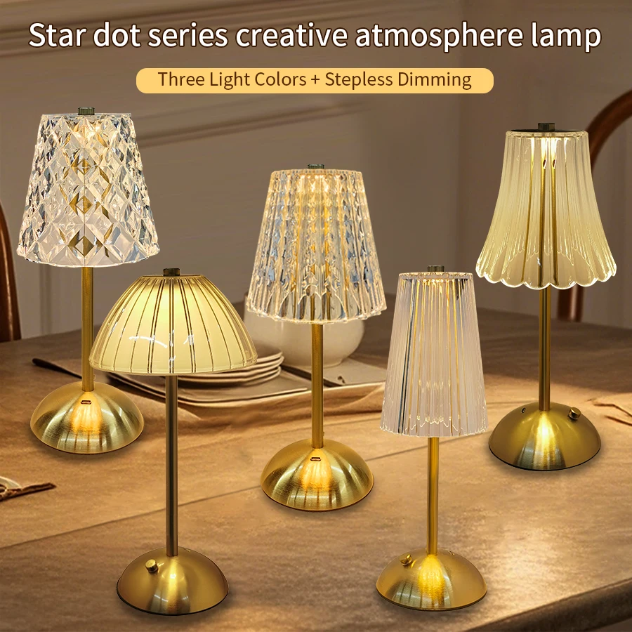 Rechargeable Crystal LED Table Lamp, Touch Sensor, Dimmable Desktop Night Light For Bedroom, Bedside, Hotel, Bar Decor a