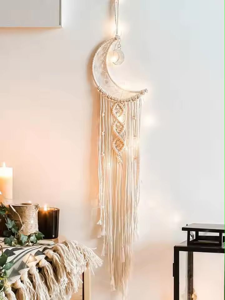 Boho Glow Dreamcatcher Wall Lamp Woven Bohemian Wall Hanging black Moon with Light
