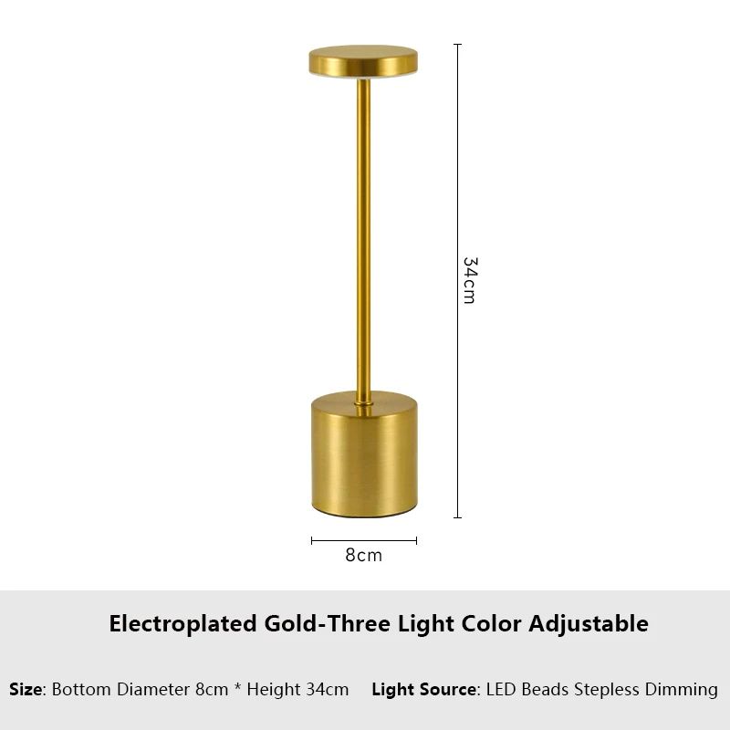 Simple Touch Sensor LED Table Lamp Rechargeable Desk Lamp, Adjustable Brightness, Ambient Bedside Light For Bedroom, Bar gold