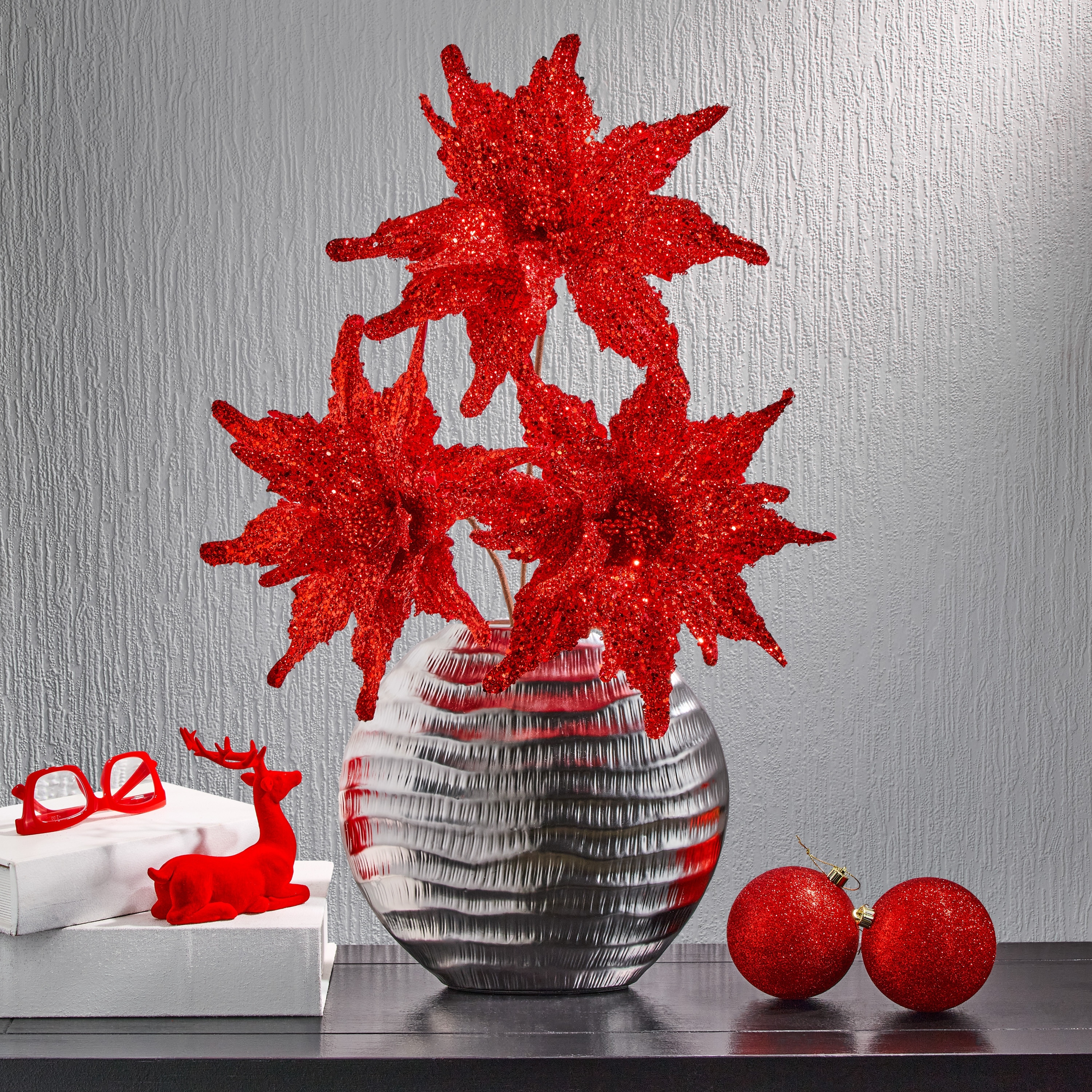 22" Sequin Glitter Poinsettia Stem