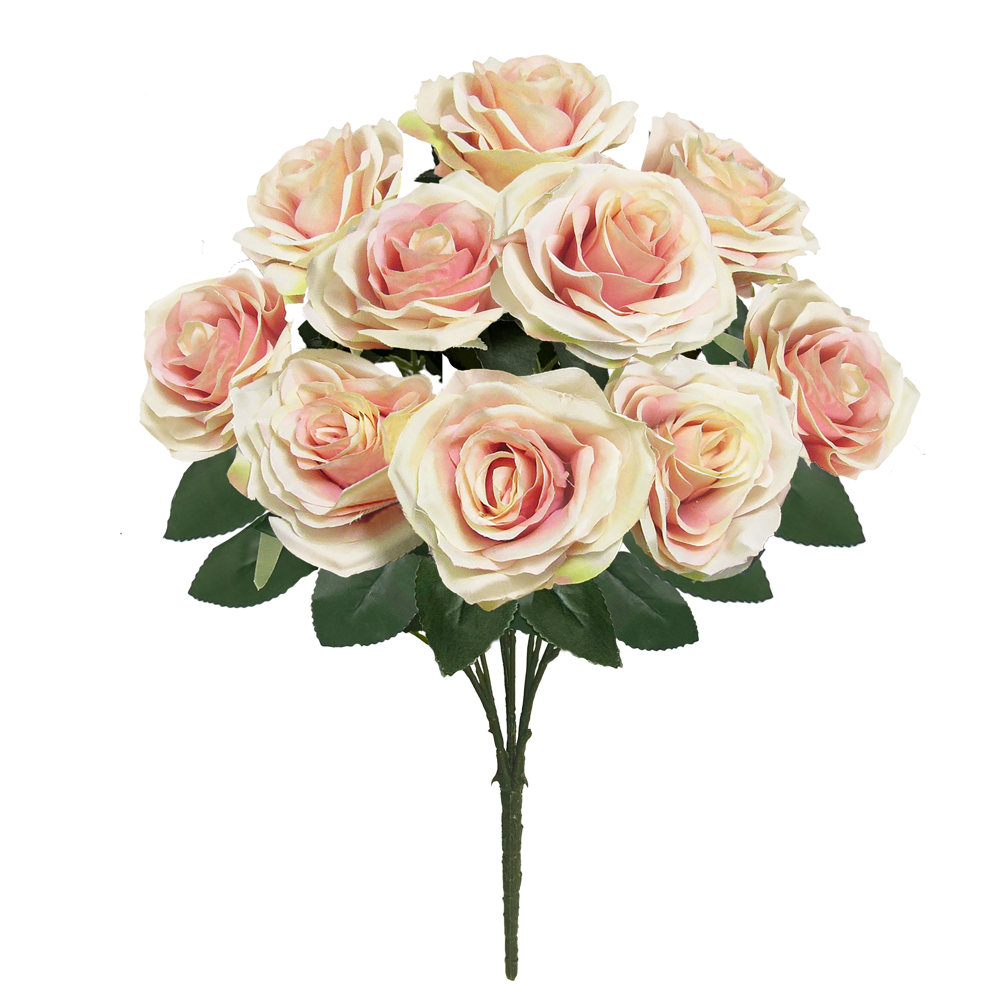 Set of 2 Artificial Queen Rose Flower Stem Bush Bouquet 18in